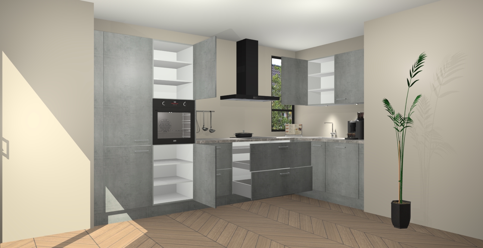 Welkom in uw nieuwe moderne keuken! Laat ons u voorstellen aan de Beton Parelgrijs keuken Vlaanderen . Deze prachtige hoekkeuken straalt exclusiviteit en luxe uit als geen ander. Het strakke design, de tijdloze kleuren en het model maken van deze keuken een moderne klassieker. En met voldoende opbergruimte heeft deze keuken echt voor ieder wat wils.