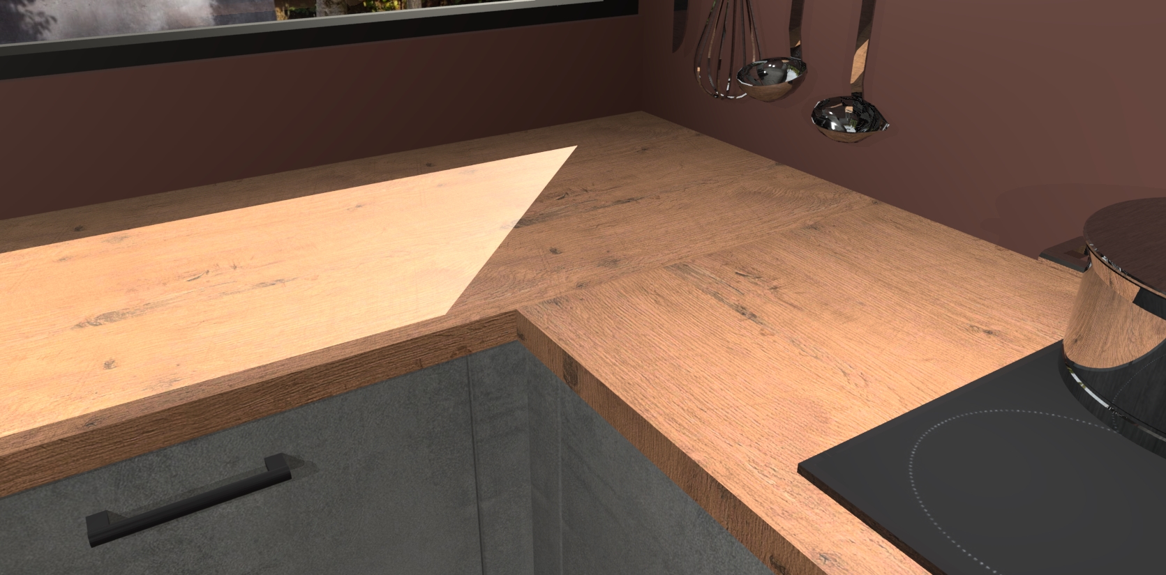 - Bij een hoekwerkblad zijn de hoeken in gevreesd en op maat gemaakt