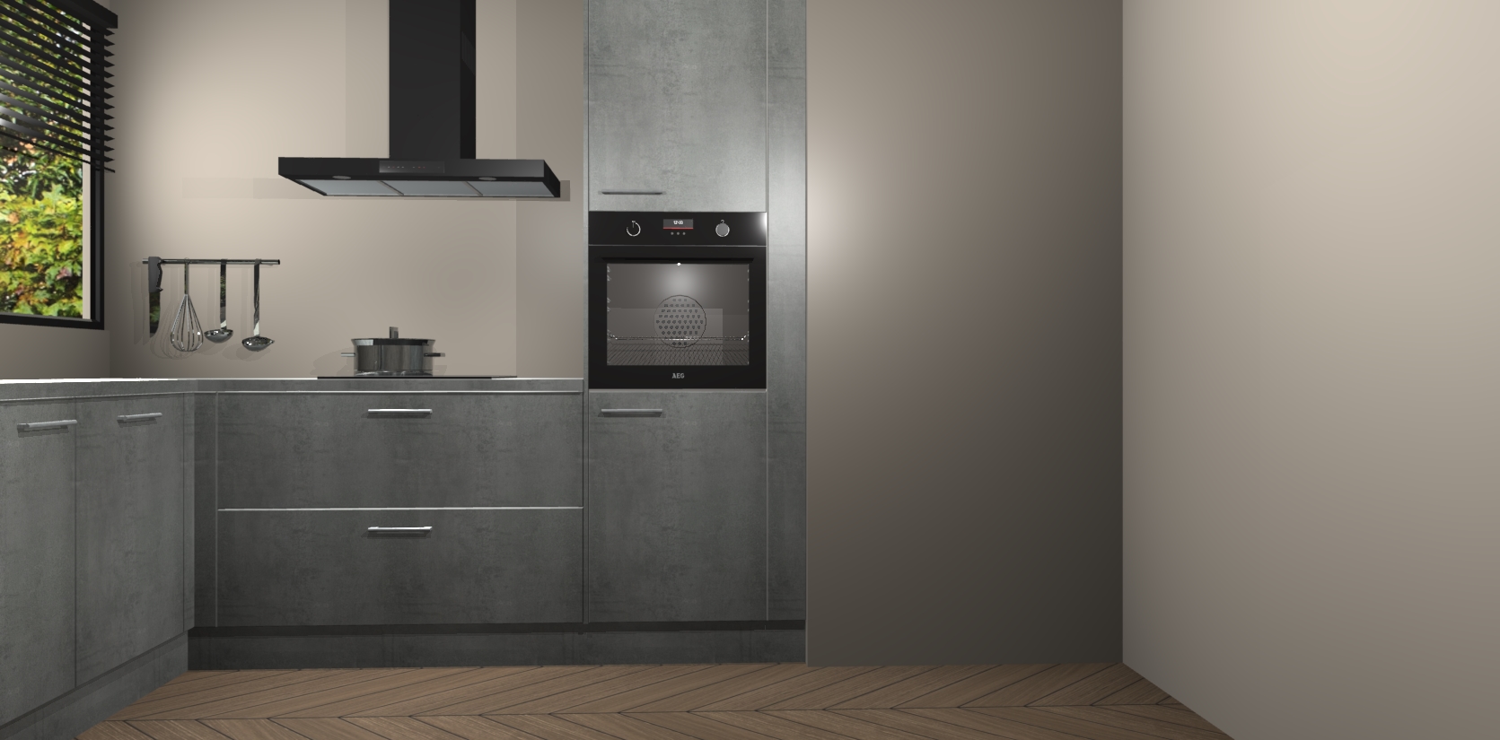 Met een modern, tijdloos design en ruime opslagruimte, zult u zich in no-time thuis voelen in uw nieuwe keuken. Uw leven wordt eenvoudiger met de soft-close deuren die voor het ultieme stille comfort zorgen - geen geluid dat u stoort terwijl u kookt. Ook is de keuken voorzien van 5 ingebouwde apparaten: een oven, inductie kookplaat, afzuigkap, vaatwasser en koelkast. Deze kunnen gemakkelijk na bestelling worden bijgewerkt naar AEG - waardoor uw luxe ervaring compleet is.