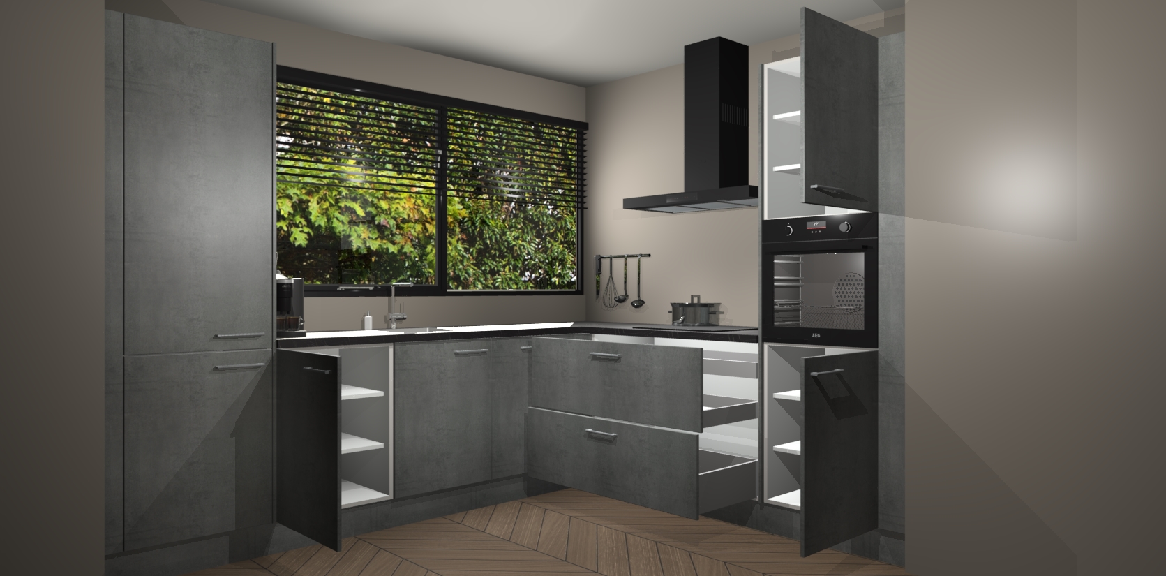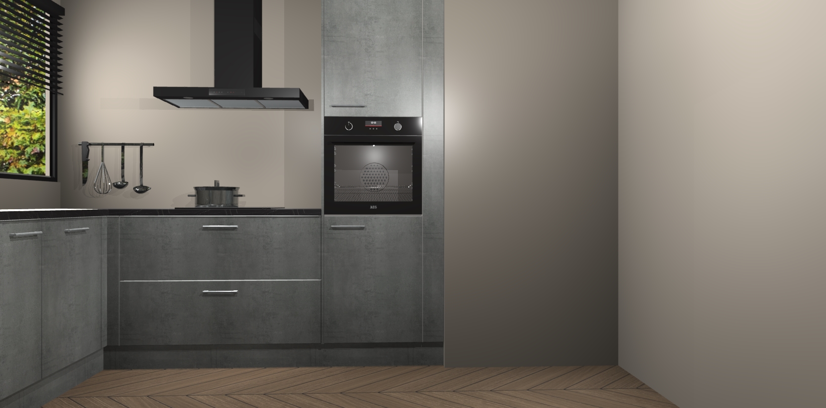 Met een modern, tijdloos design en ruime opslagruimte, zult u zich in no-time thuis voelen in uw nieuwe keuken. Uw leven wordt eenvoudiger met de soft-close deuren die voor het ultieme stille comfort zorgen - geen geluid dat u stoort terwijl u kookt. Ook is de keuken voorzien van 5 ingebouwde apparaten: een oven, inductie kookplaat, afzuigkap, vaatwasser en koelkast. Deze kunnen gemakkelijk na bestelling worden bijgewerkt naar AEG - waardoor uw luxe ervaring compleet is.