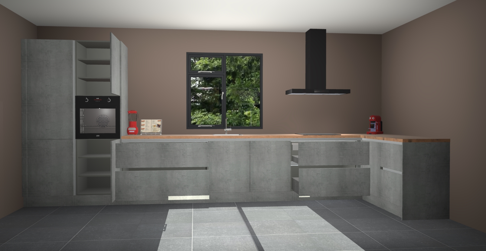 De Beton parelgrijze keuken Lille wordt geleverd met vijf inbouwapparaten - een oven, inductiekookplaat, afzuigkap, vaatwasser en koelkast. Maar dat is nog niet alles! Na bestelling kunnen deze apparaten eenvoudig worden geüpgraded naar premium AEG-apparatuur. Bovendien is er zelfs de optie om de oven te vervangen door een combimagnetron of uw inductiekookplaat te vervangen door een kookplaat met geïntegreerde afzuiging.
