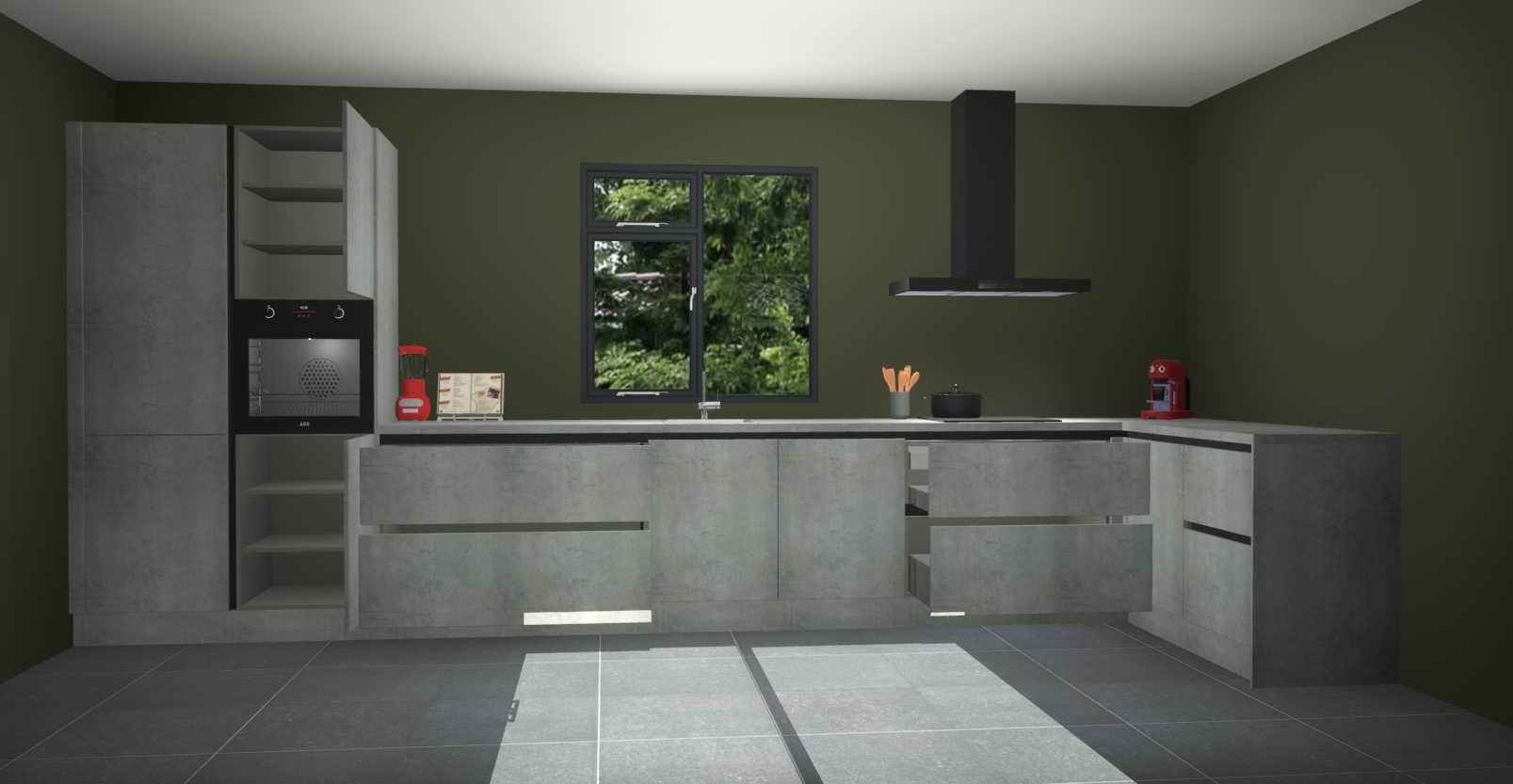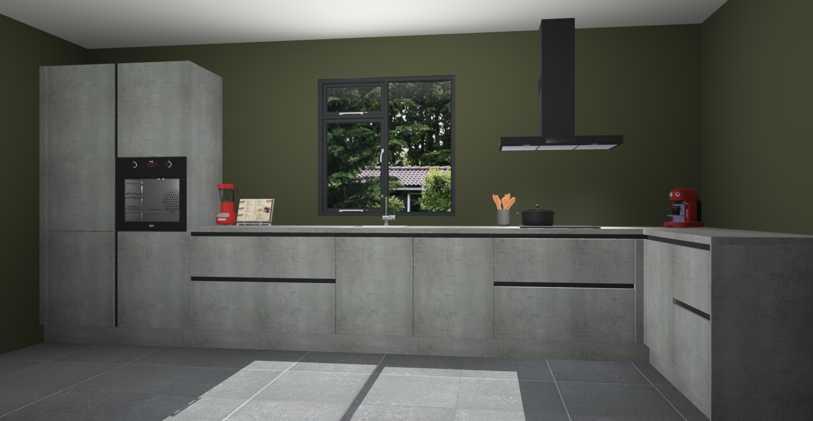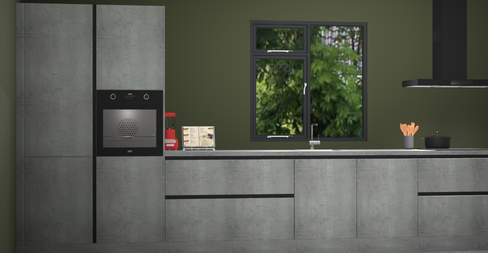 De Beton parelgrijze keuken Lille wordt geleverd met vijf inbouwapparaten - een oven, inductiekookplaat, afzuigkap, vaatwasser en koelkast. Maar dat is nog niet alles! Na bestelling kunnen deze apparaten eenvoudig worden geüpgraded naar premium AEG-apparatuur. Bovendien is er zelfs de optie om de oven te vervangen door een combimagnetron of uw inductiekookplaat te vervangen door een kookplaat met geïntegreerde afzuiging.