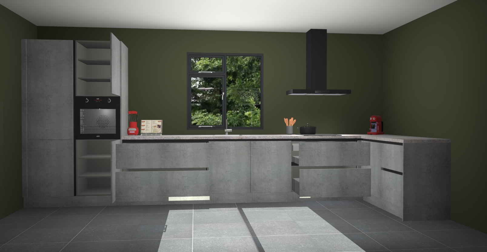 De Beton parelgrijze keuken Lille wordt geleverd met vijf inbouwapparaten - een oven, inductiekookplaat, afzuigkap, vaatwasser en koelkast. Maar dat is nog niet alles! Na bestelling kunnen deze apparaten eenvoudig worden geüpgraded naar premium AEG-apparatuur. Bovendien is er zelfs de optie om de oven te vervangen door een combimagnetron of uw inductiekookplaat te vervangen door een kookplaat met geïntegreerde afzuiging.