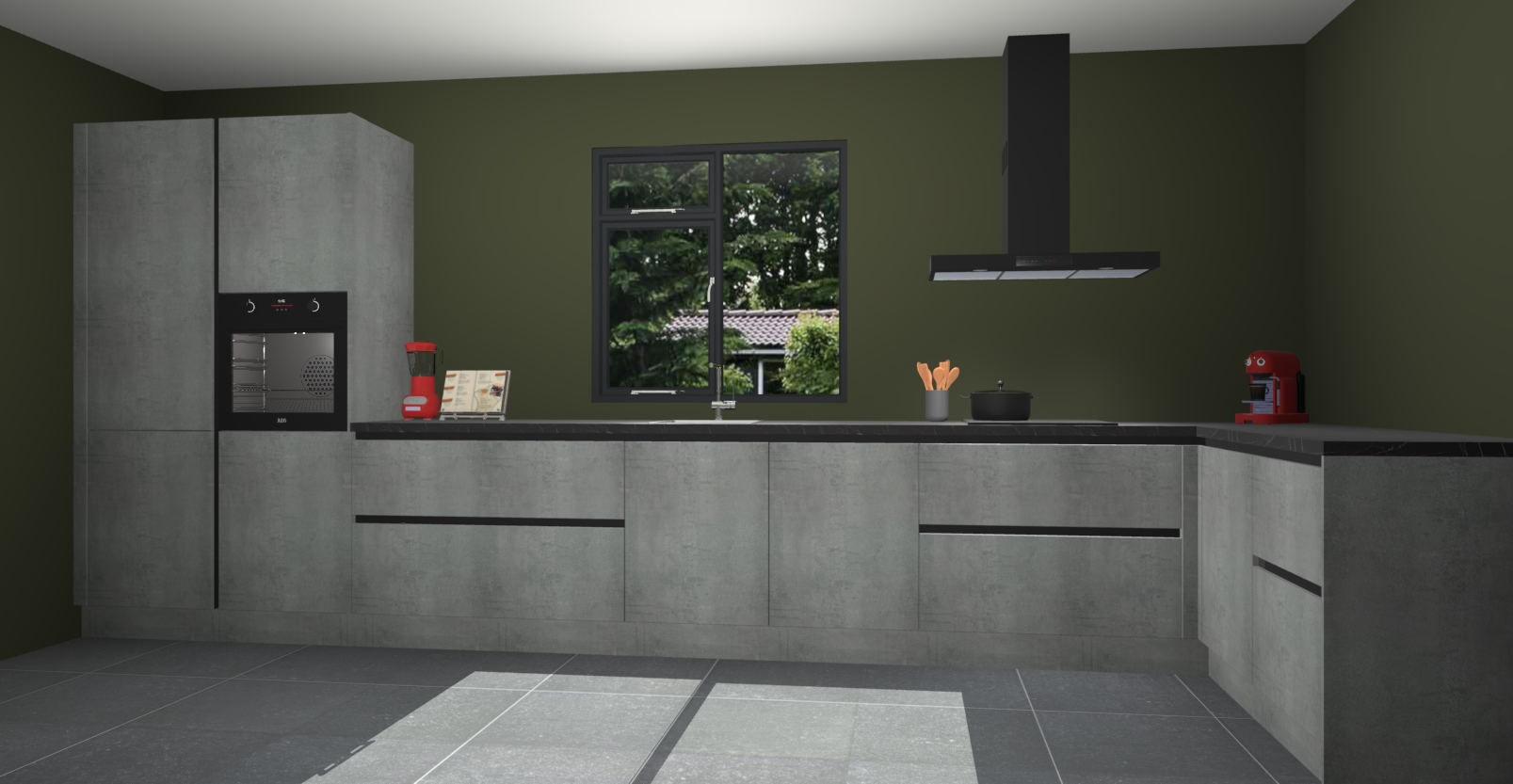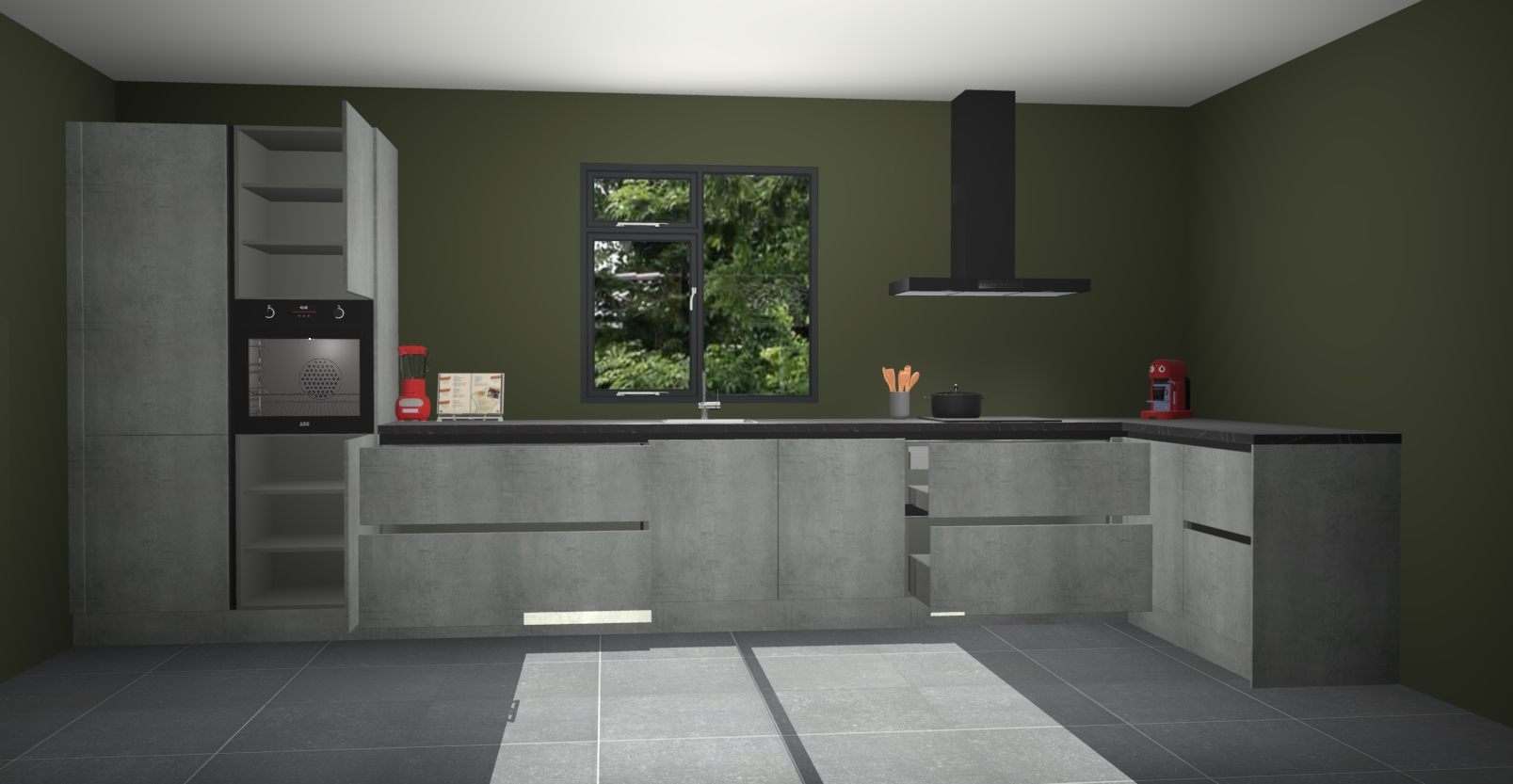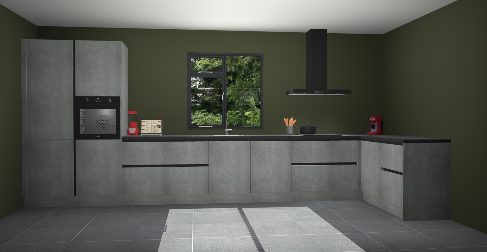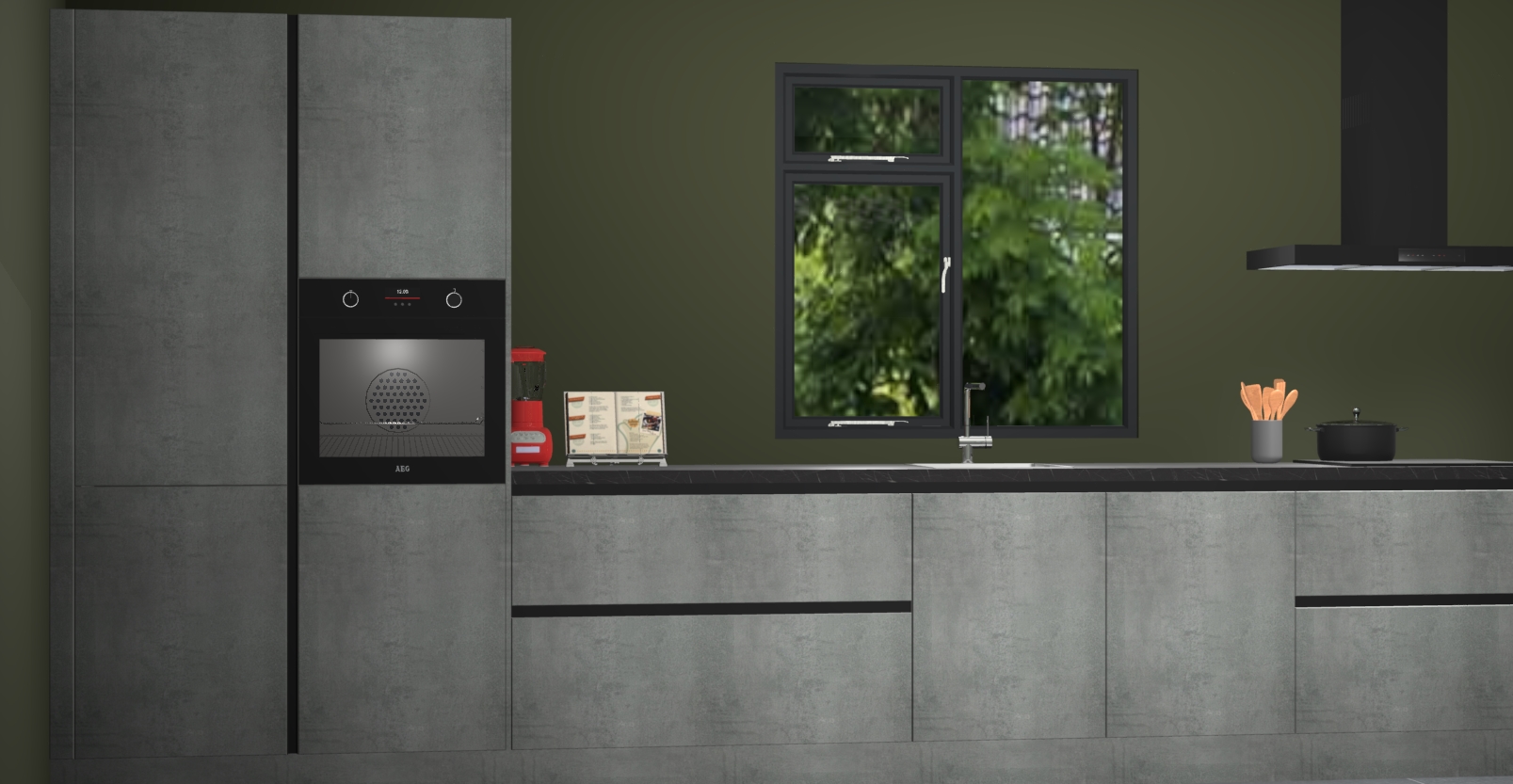 De Beton parelgrijze keuken Lille wordt geleverd met vijf inbouwapparaten - een oven, inductiekookplaat, afzuigkap, vaatwasser en koelkast. Maar dat is nog niet alles! Na bestelling kunnen deze apparaten eenvoudig worden geüpgraded naar premium AEG-apparatuur. Bovendien is er zelfs de optie om de oven te vervangen door een combimagnetron of uw inductiekookplaat te vervangen door een kookplaat met geïntegreerde afzuiging.
