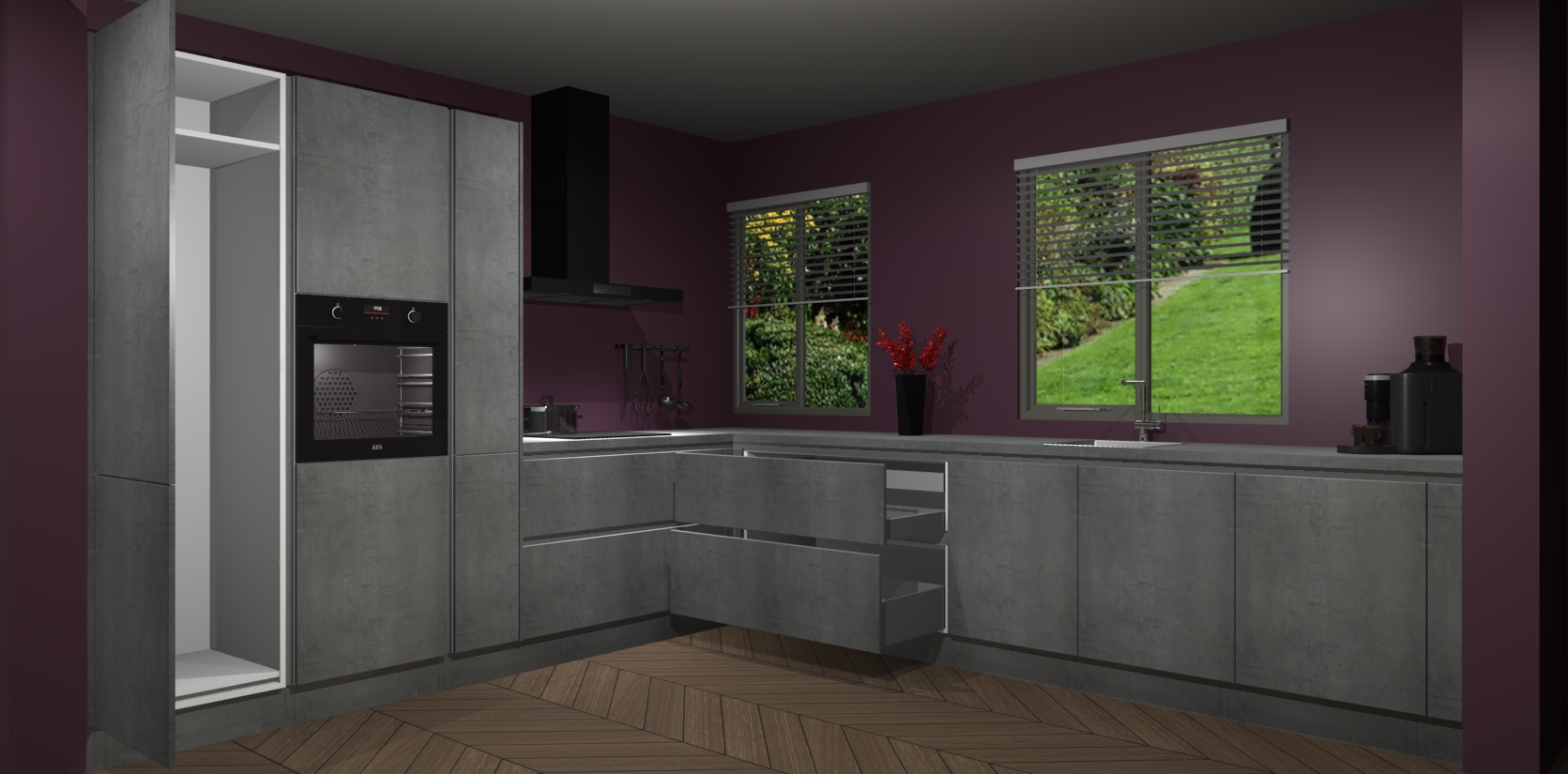 Welkom bij de Beton Parelgrijze keuken Palermo. Deze prachtige keuken zal de komende jaren het middelpunt van de belangstelling in uw huis zijn. Uitgerust met vijf inbouwapparaten komt u nooit kookgereedschap tekort. Bovendien geeft de warme houtlook elke ruimte een uitnodigende en tijdloze uitstraling.