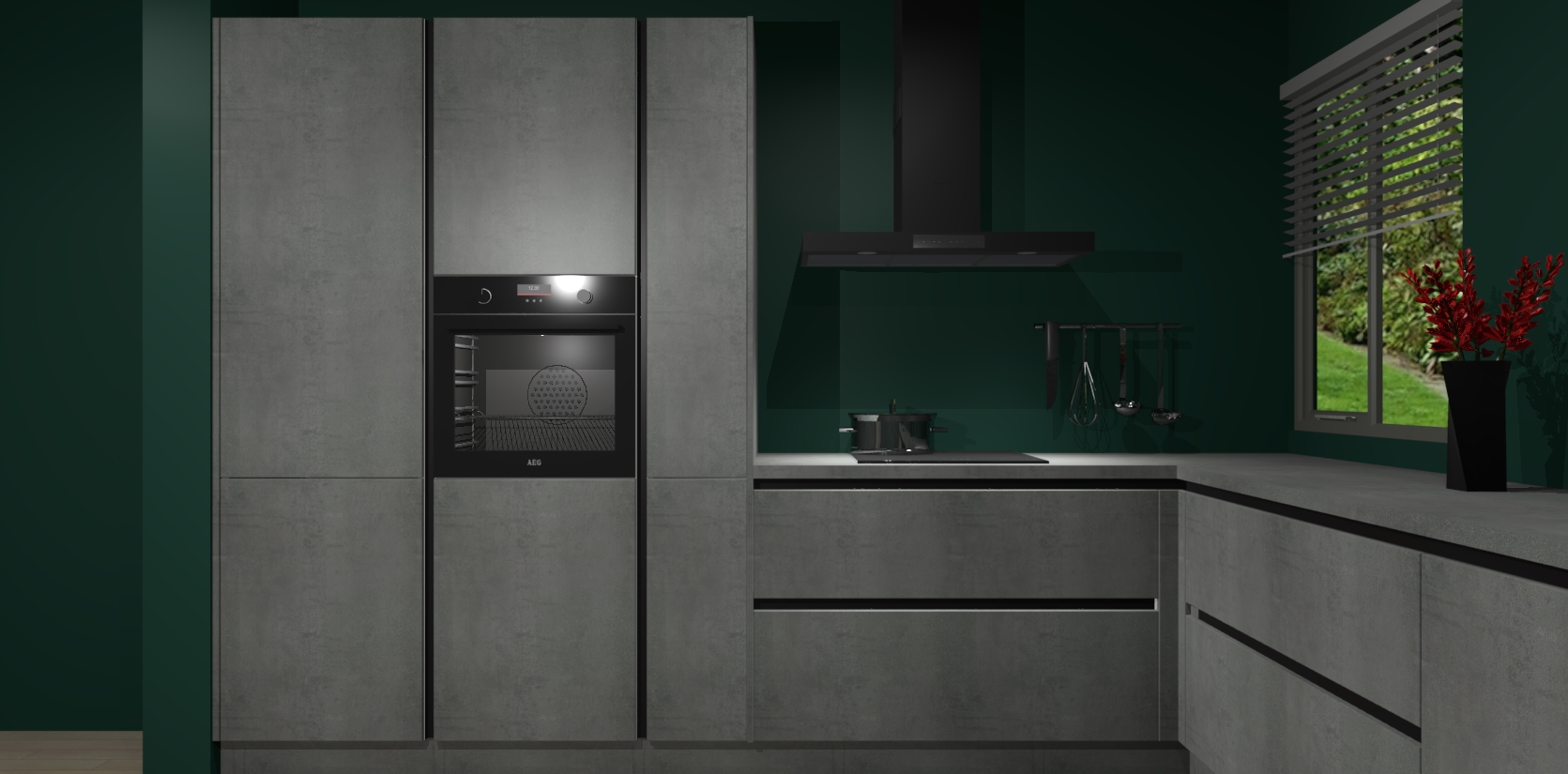 Welkom bij de Beton Parelgrijze keuken Palermo. Deze prachtige keuken zal de komende jaren het middelpunt van de belangstelling in uw huis zijn. Uitgerust met vijf inbouwapparaten komt u nooit kookgereedschap tekort. Bovendien geeft de warme houtlook elke ruimte een uitnodigende en tijdloze uitstraling.