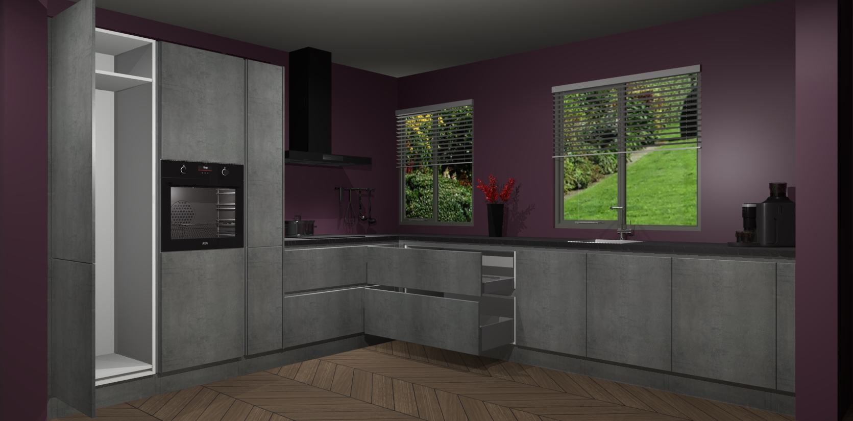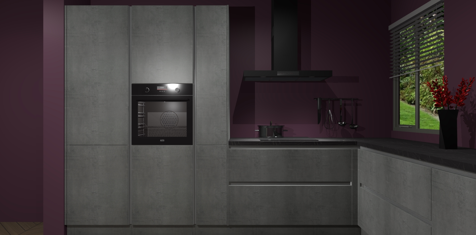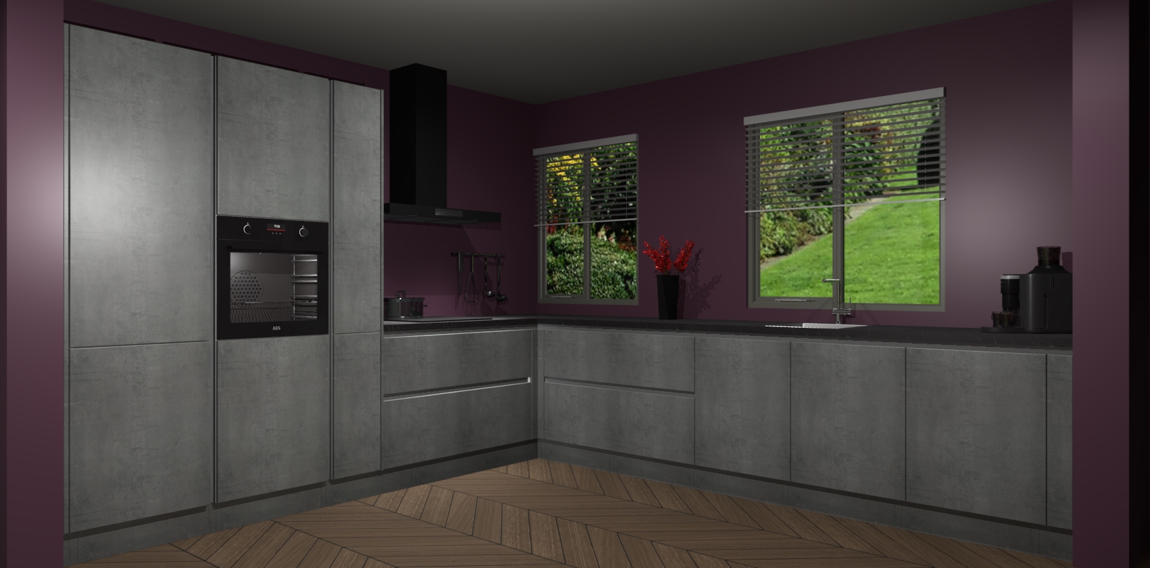 Welkom bij de Beton Parelgrijze keuken Palermo. Deze prachtige keuken zal de komende jaren het middelpunt van de belangstelling in uw huis zijn. Uitgerust met vijf inbouwapparaten komt u nooit kookgereedschap tekort. Bovendien geeft de warme houtlook elke ruimte een uitnodigende en tijdloze uitstraling.