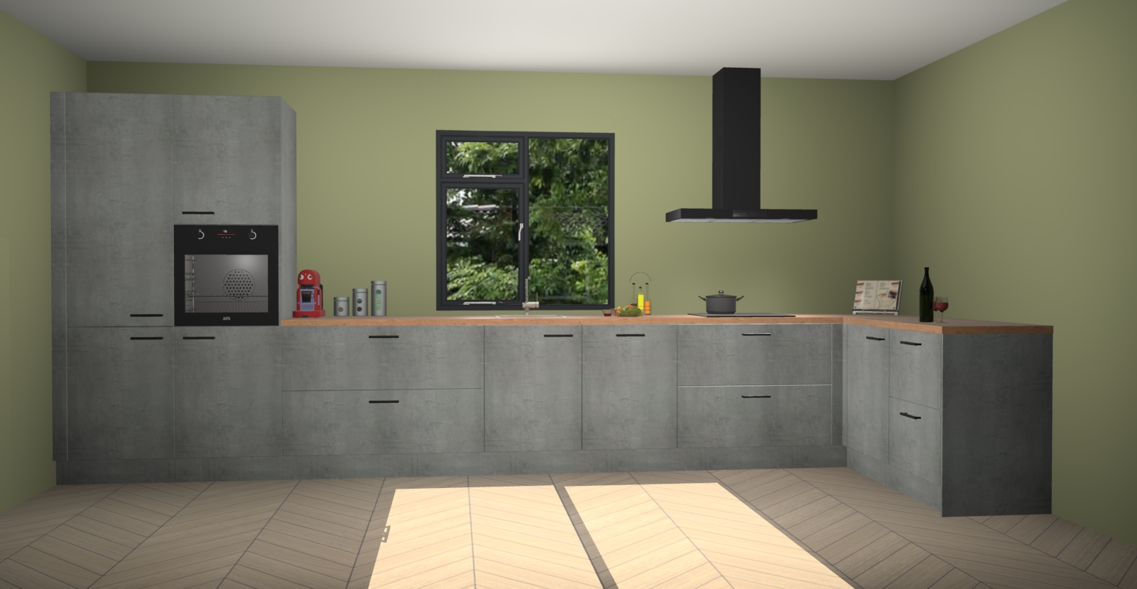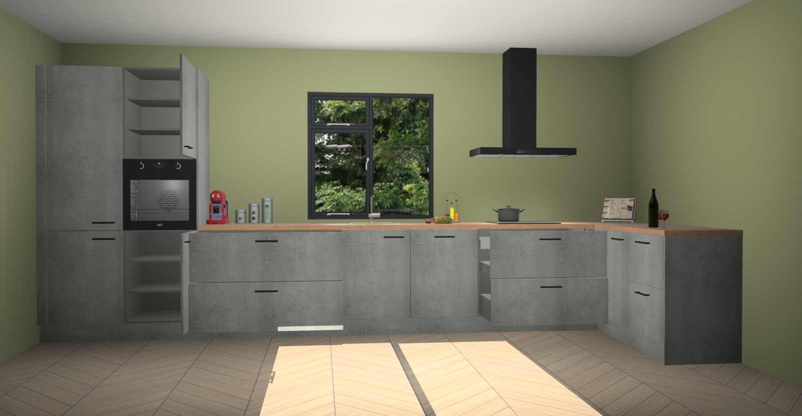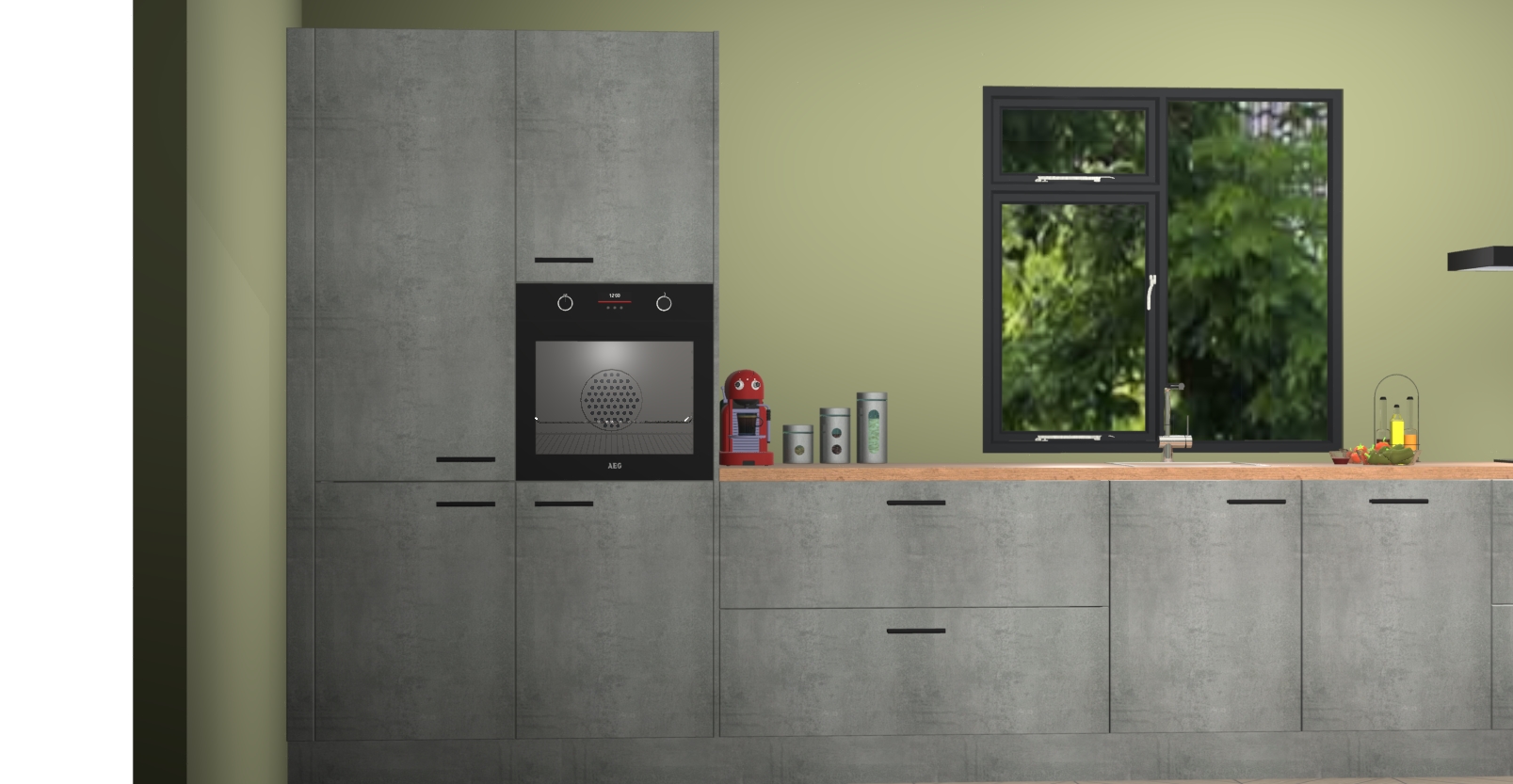 De Beton parelgrijze keuken Lille wordt geleverd met vijf inbouwapparaten - een oven, inductiekookplaat, afzuigkap, vaatwasser en koelkast. Maar dat is nog niet alles! Na bestelling kunnen deze apparaten eenvoudig worden geüpgraded naar premium AEG-apparatuur. Bovendien is er zelfs de optie om de oven te vervangen door een combimagnetron of uw inductiekookplaat te vervangen door een kookplaat met geïntegreerde afzuiging.