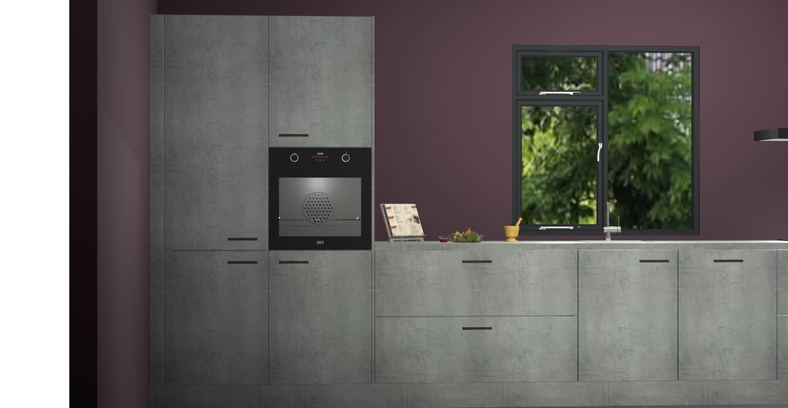 De Beton parelgrijze keuken Lille wordt geleverd met vijf inbouwapparaten - een oven, inductiekookplaat, afzuigkap, vaatwasser en koelkast. Maar dat is nog niet alles! Na bestelling kunnen deze apparaten eenvoudig worden geüpgraded naar premium AEG-apparatuur. Bovendien is er zelfs de optie om de oven te vervangen door een combimagnetron of uw inductiekookplaat te vervangen door een kookplaat met geïntegreerde afzuiging.