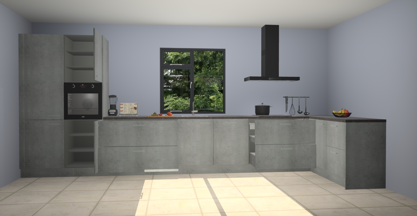De Beton parelgrijze keuken Lille wordt geleverd met vijf inbouwapparaten - een oven, inductiekookplaat, afzuigkap, vaatwasser en koelkast. Maar dat is nog niet alles! Na bestelling kunnen deze apparaten eenvoudig worden geüpgraded naar premium AEG-apparatuur. Bovendien is er zelfs de optie om de oven te vervangen door een combimagnetron of uw inductiekookplaat te vervangen door een kookplaat met geïntegreerde afzuiging.