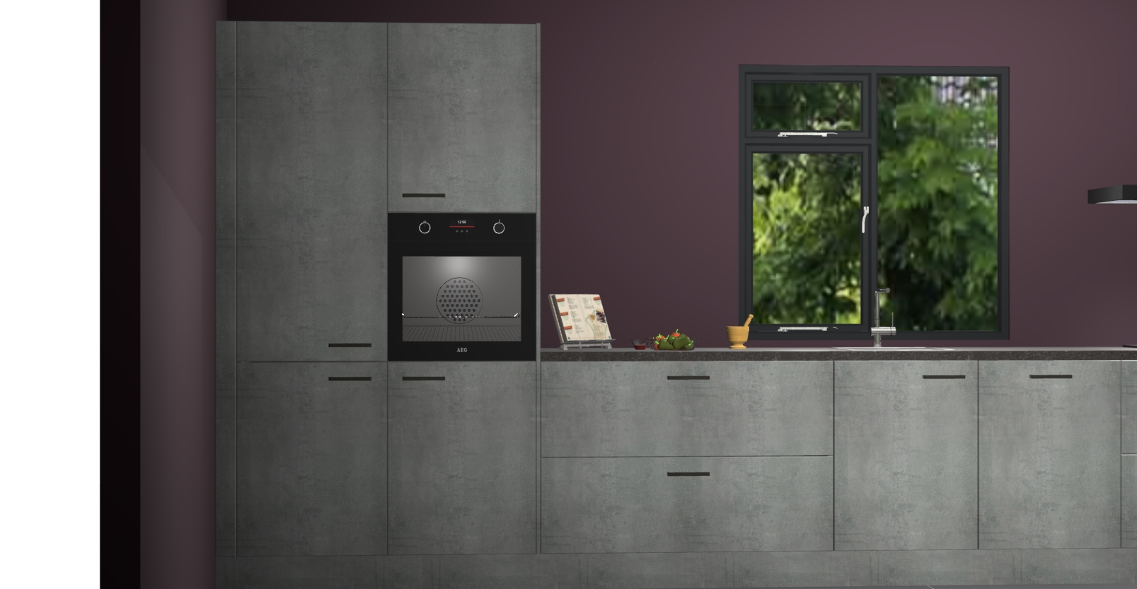 De Beton parelgrijze keuken Lille wordt geleverd met vijf inbouwapparaten - een oven, inductiekookplaat, afzuigkap, vaatwasser en koelkast. Maar dat is nog niet alles! Na bestelling kunnen deze apparaten eenvoudig worden geüpgraded naar premium AEG-apparatuur. Bovendien is er zelfs de optie om de oven te vervangen door een combimagnetron of uw inductiekookplaat te vervangen door een kookplaat met geïntegreerde afzuiging.