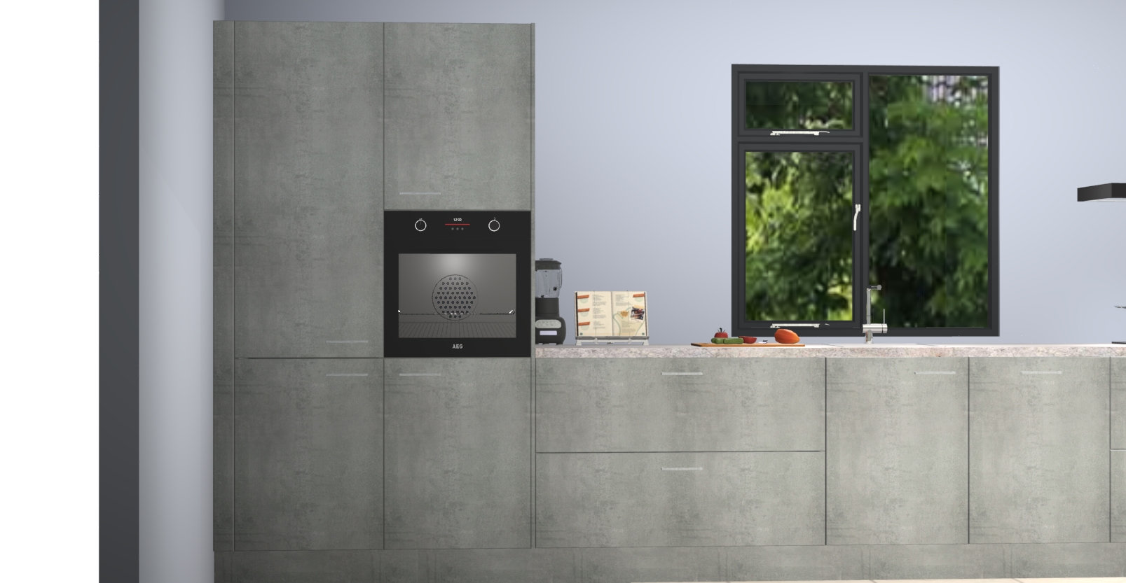 De Beton parelgrijze keuken Lille wordt geleverd met vijf inbouwapparaten - een oven, inductiekookplaat, afzuigkap, vaatwasser en koelkast. Maar dat is nog niet alles! Na bestelling kunnen deze apparaten eenvoudig worden geüpgraded naar premium AEG-apparatuur. Bovendien is er zelfs de optie om de oven te vervangen door een combimagnetron of uw inductiekookplaat te vervangen door een kookplaat met geïntegreerde afzuiging.