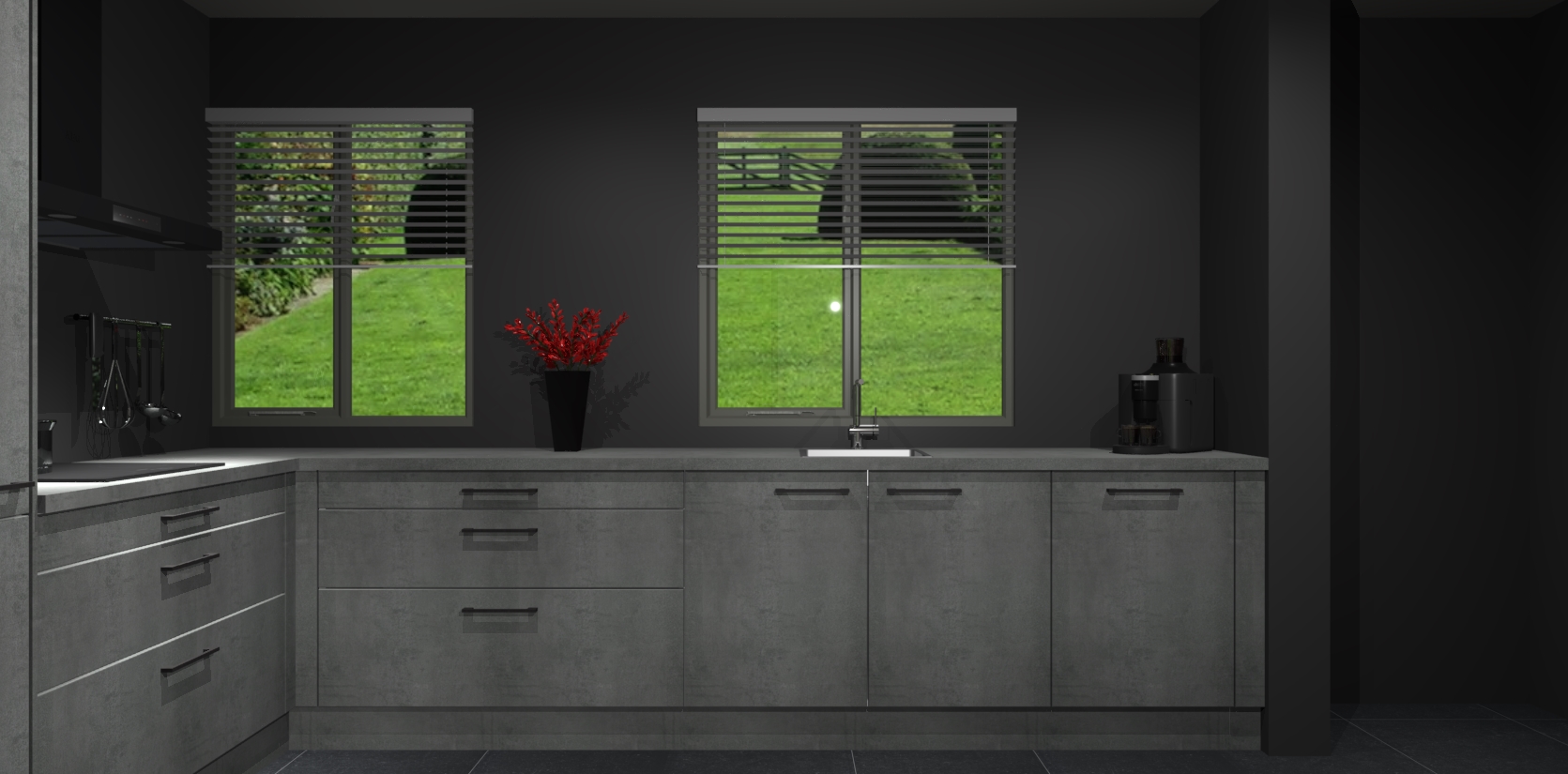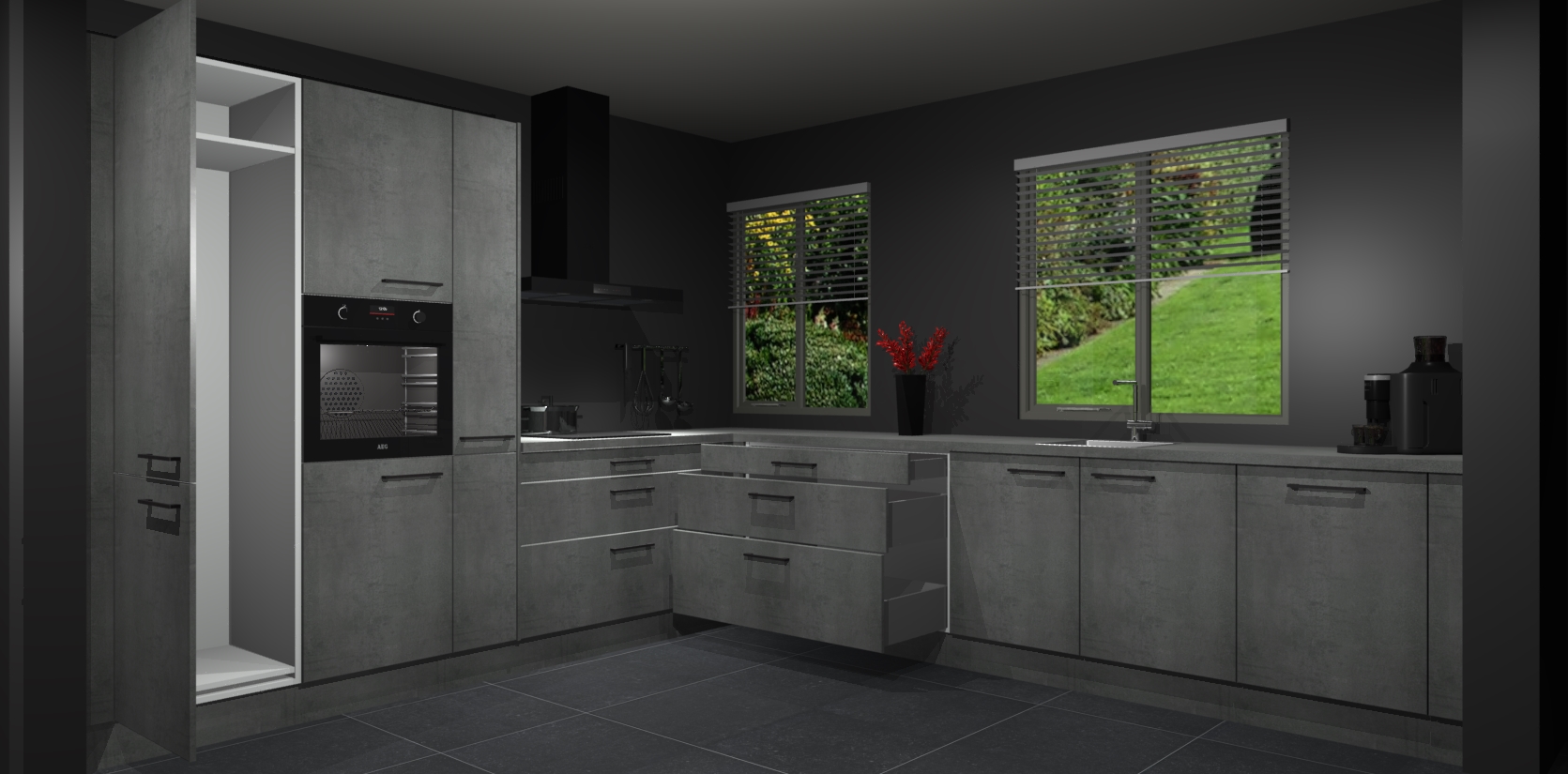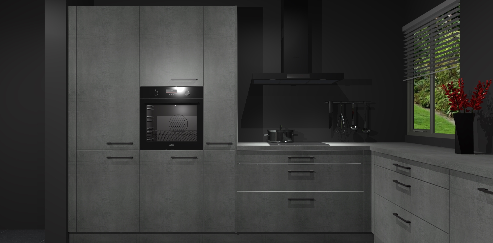 Welkom bij de Beton Parelgrijze keuken Palermo. Deze prachtige keuken zal de komende jaren het middelpunt van de belangstelling in uw huis zijn. Uitgerust met vijf inbouwapparaten komt u nooit kookgereedschap tekort. Bovendien geeft de warme houtlook elke ruimte een uitnodigende en tijdloze uitstraling.