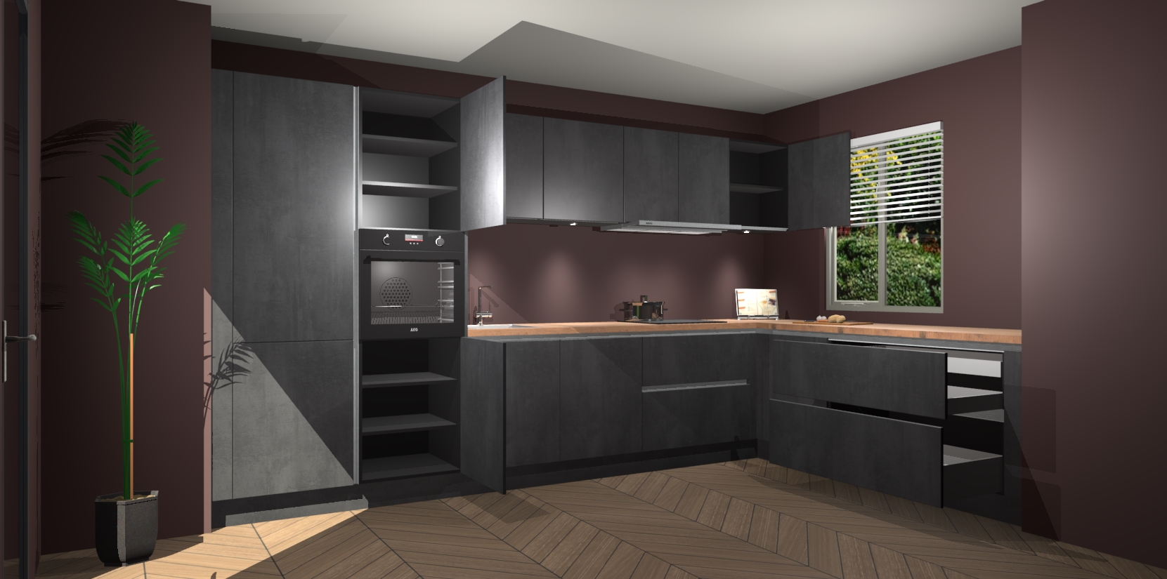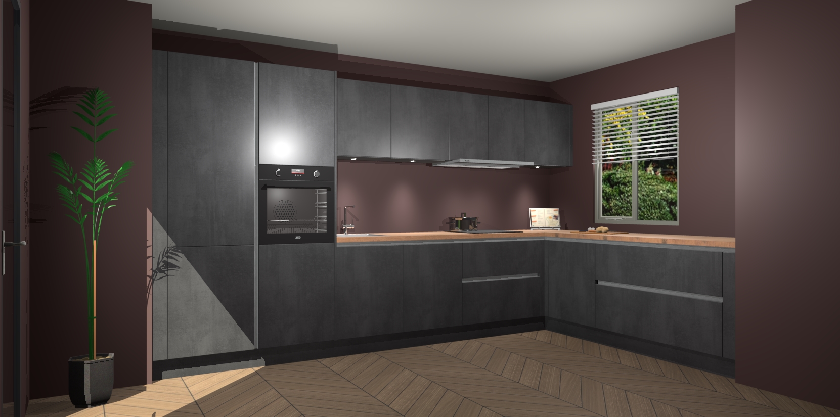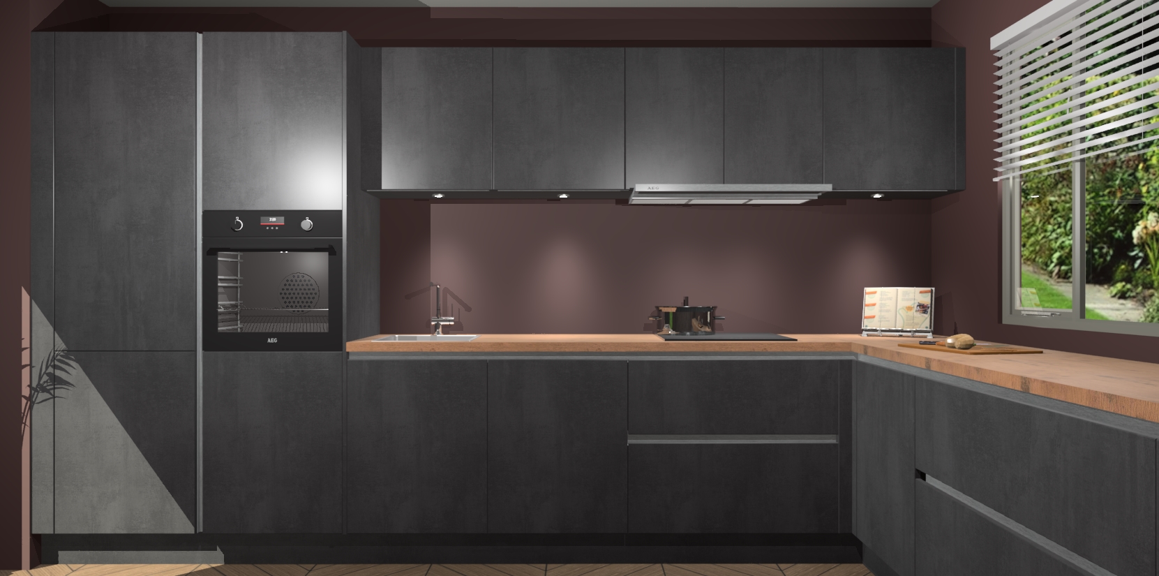 Verwelkom de natuurlijke warmte van de Beton Zwart greeploze keuken Petten in uw huis. Deze prachtige hoekkeuken met zijn moderne design en warme houten look geeft u meer dan genoeg opbergruimte om uw comfortabel te voelen in uw keuken. Geniet van soft-close deuren die al uw gasten het gevoel zullen geven dat ze zich in een luxueuze ruimte bevinden.