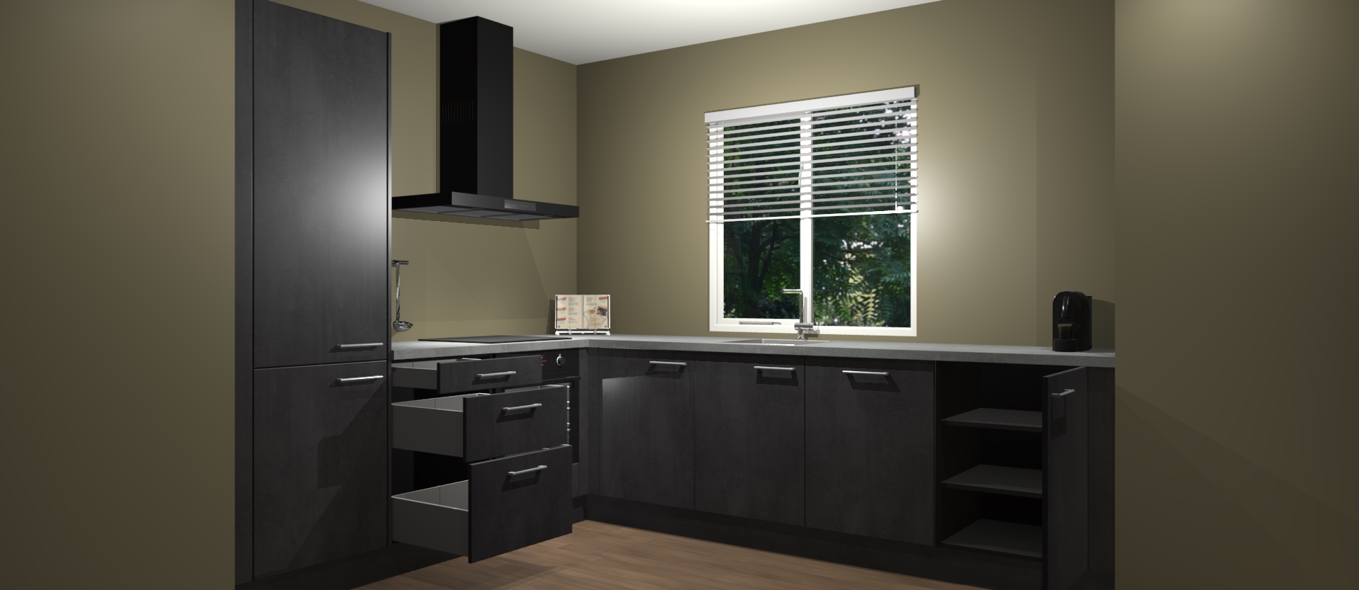 Onze Beton Zwart keuken Doha gaat niet alleen lang mee, maar biedt ook een onklopbare prijs. We garanderen dat we nooit een extravagant prijskaartje zullen hanteren omdat we geen compromissen sluiten op het vlak van kwaliteit - gewoon verfijnd Duits vakmanschap voor de juiste prijs. Profiteer nu en investeer in dit tijdloze meesterwerk voordat de voorraad op is!