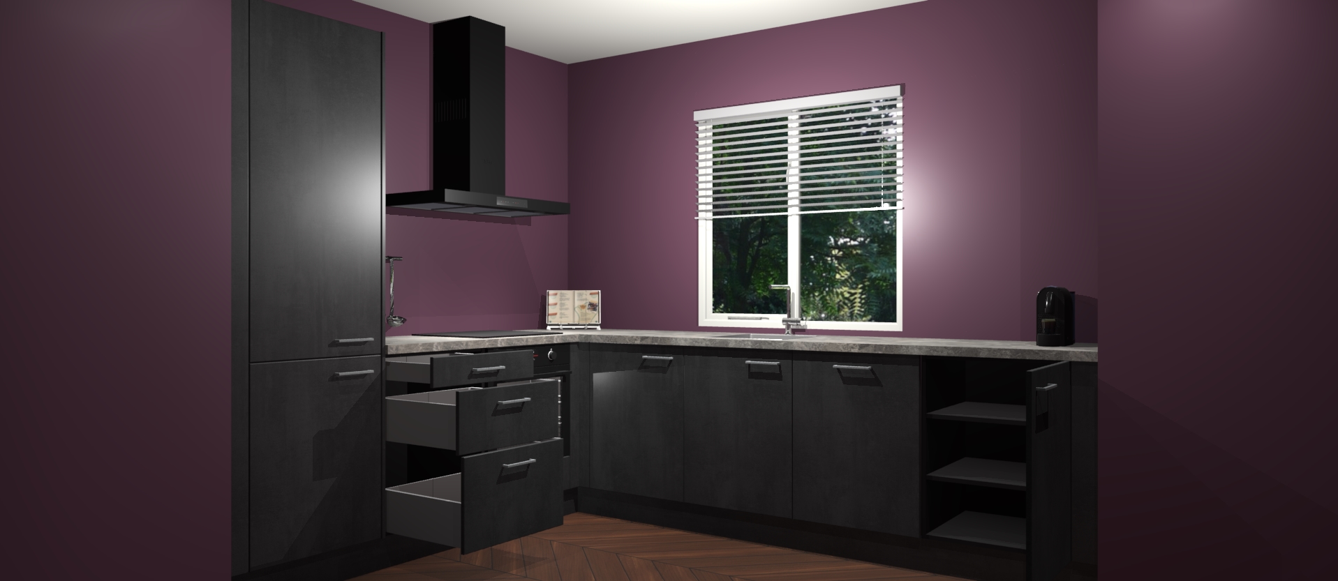 Maak kennis met de Beton Zwart keuken Doha - de perfecte aanvulling voor uw moderne keuken! Ervaar tijdloos design, elegantie en een chique uitstraling met onze zwarte handgrepen, soft-close deuren en veel opbergruimte. Dit alles wordt aangeboden tegen een vaste lage prijs voor ongeëvenaarde Duitse keukenkwaliteit!