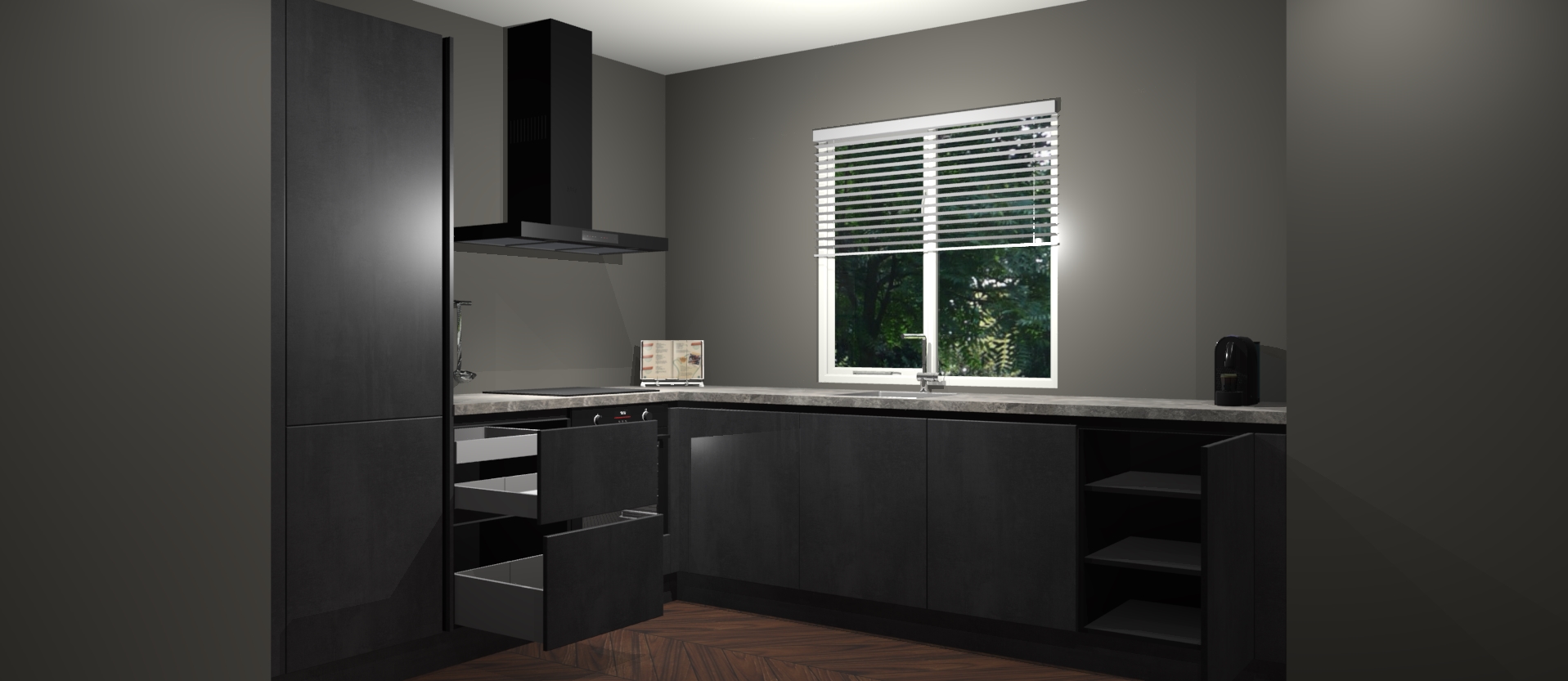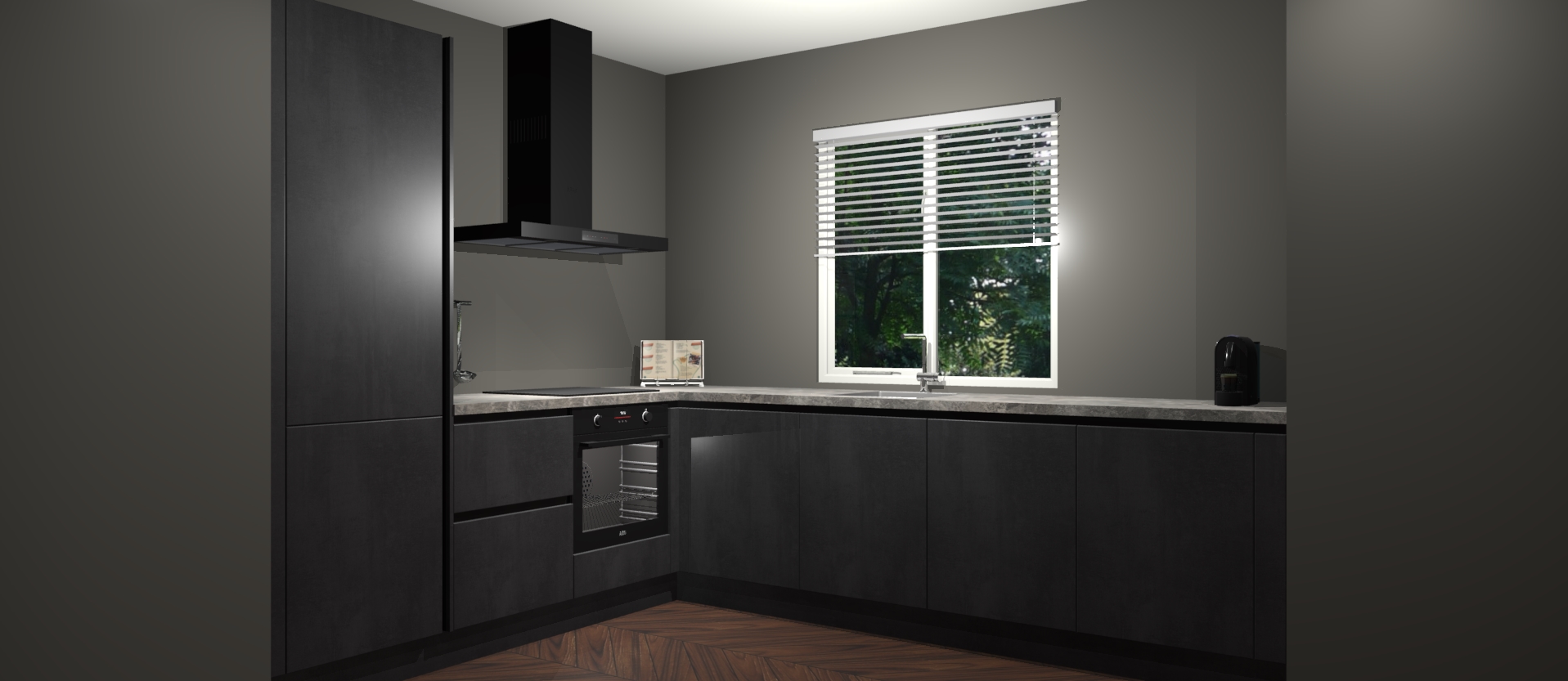 Maak kennis met de Beton Zwart keuken Doha - de perfecte aanvulling voor uw moderne keuken! Ervaar tijdloos design, elegantie en een chique uitstraling met onze zwarte handgrepen, soft-close deuren en veel opbergruimte. Dit alles wordt aangeboden tegen een vaste lage prijs voor ongeëvenaarde Duitse keukenkwaliteit!