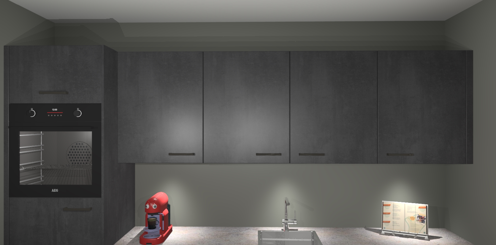 Met een modern, tijdloos design en ruime opslagruimte, zult u zich in no-time thuis voelen in uw nieuwe keuken. Uw leven wordt eenvoudiger met de soft-close deuren die voor het ultieme stille comfort zorgen - geen geluid dat u stoort terwijl u kookt. Ook is de keuken voorzien van 5 ingebouwde apparaten: een oven, inductie kookplaat, afzuigkap, vaatwasser en koelkast. Deze kunnen gemakkelijk na bestelling worden bijgewerkt naar AEG - waardoor uw luxe ervaring compleet is.