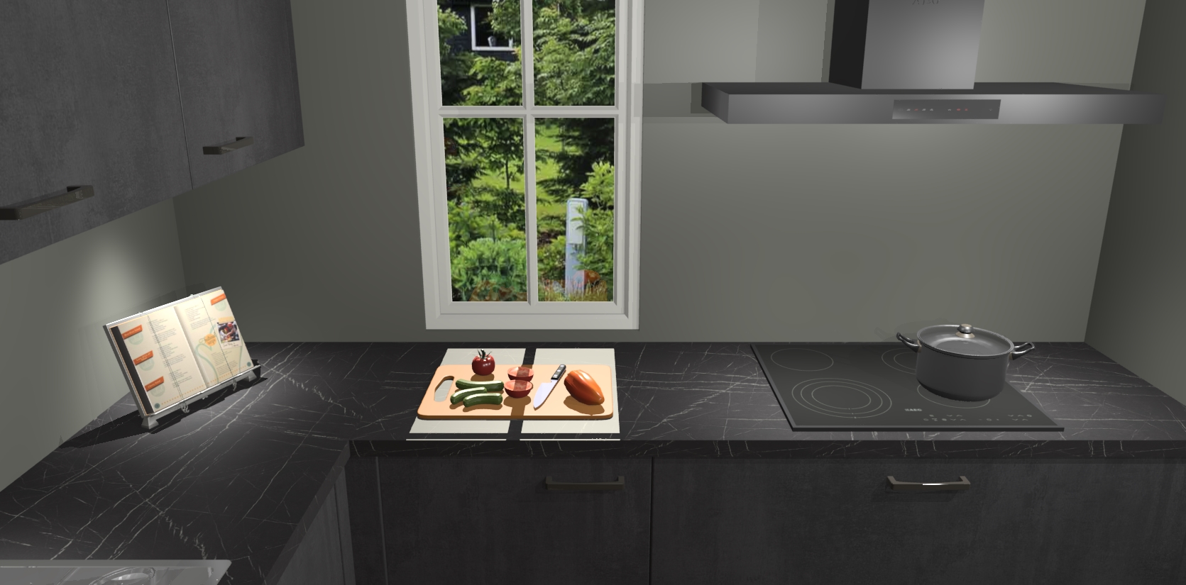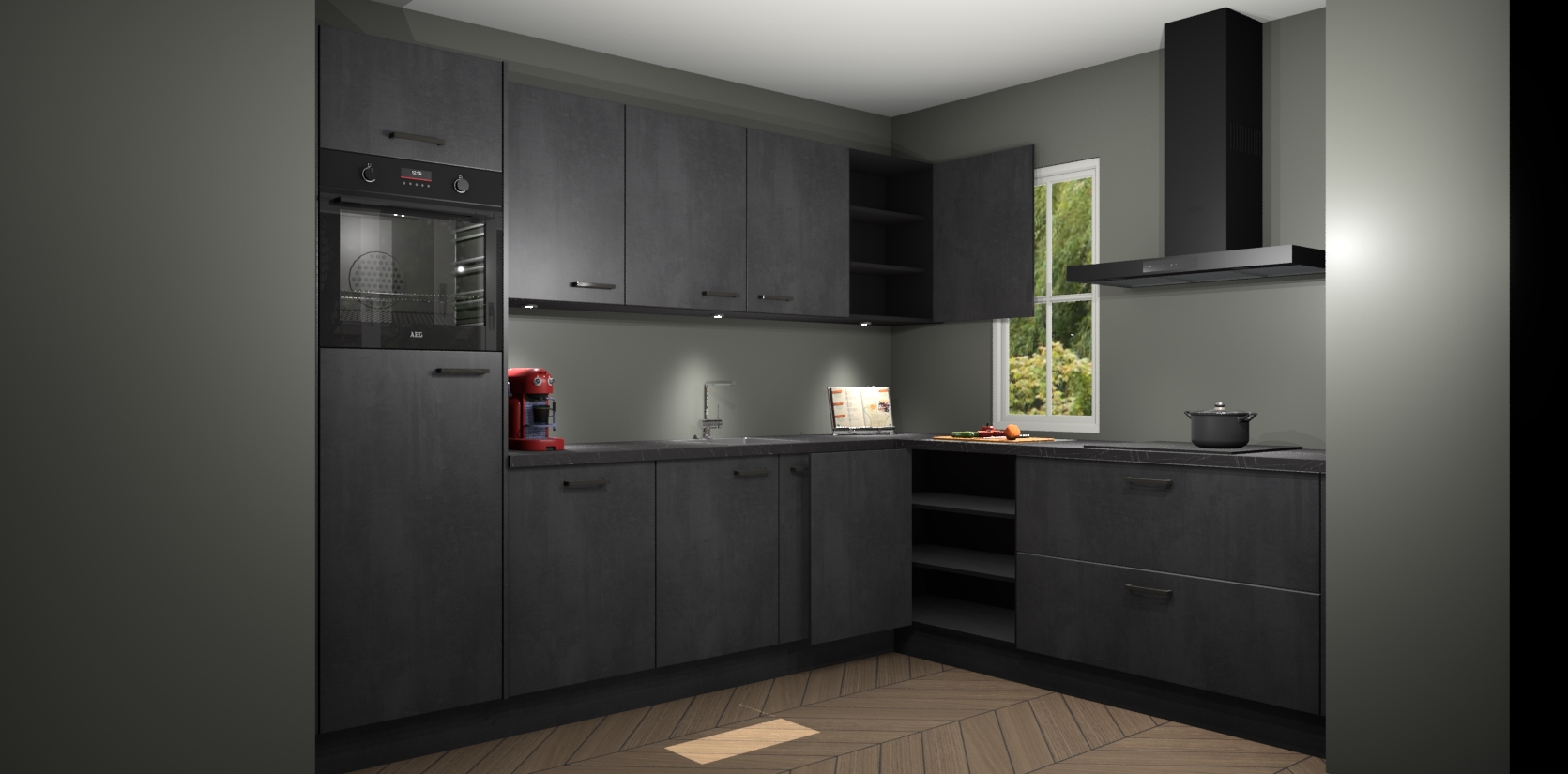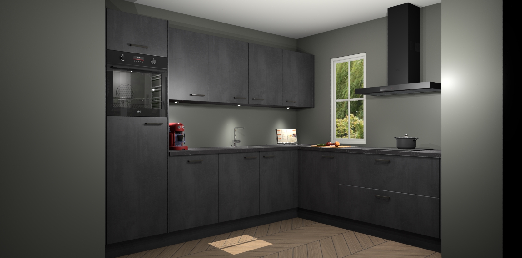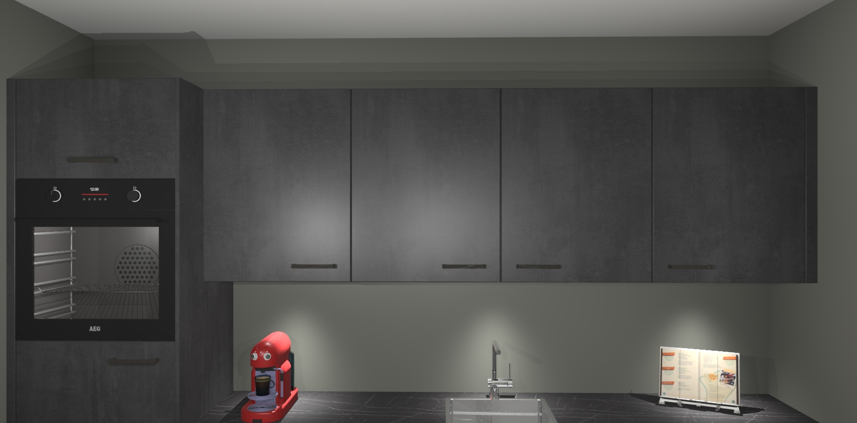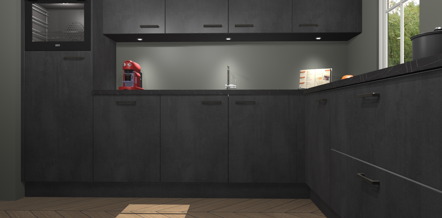 Met een modern, tijdloos design en ruime opslagruimte, zult u zich in no-time thuis voelen in uw nieuwe keuken. Uw leven wordt eenvoudiger met de soft-close deuren die voor het ultieme stille comfort zorgen - geen geluid dat u stoort terwijl u kookt. Ook is de keuken voorzien van 5 ingebouwde apparaten: een oven, inductie kookplaat, afzuigkap, vaatwasser en koelkast. Deze kunnen gemakkelijk na bestelling worden bijgewerkt naar AEG - waardoor uw luxe ervaring compleet is.