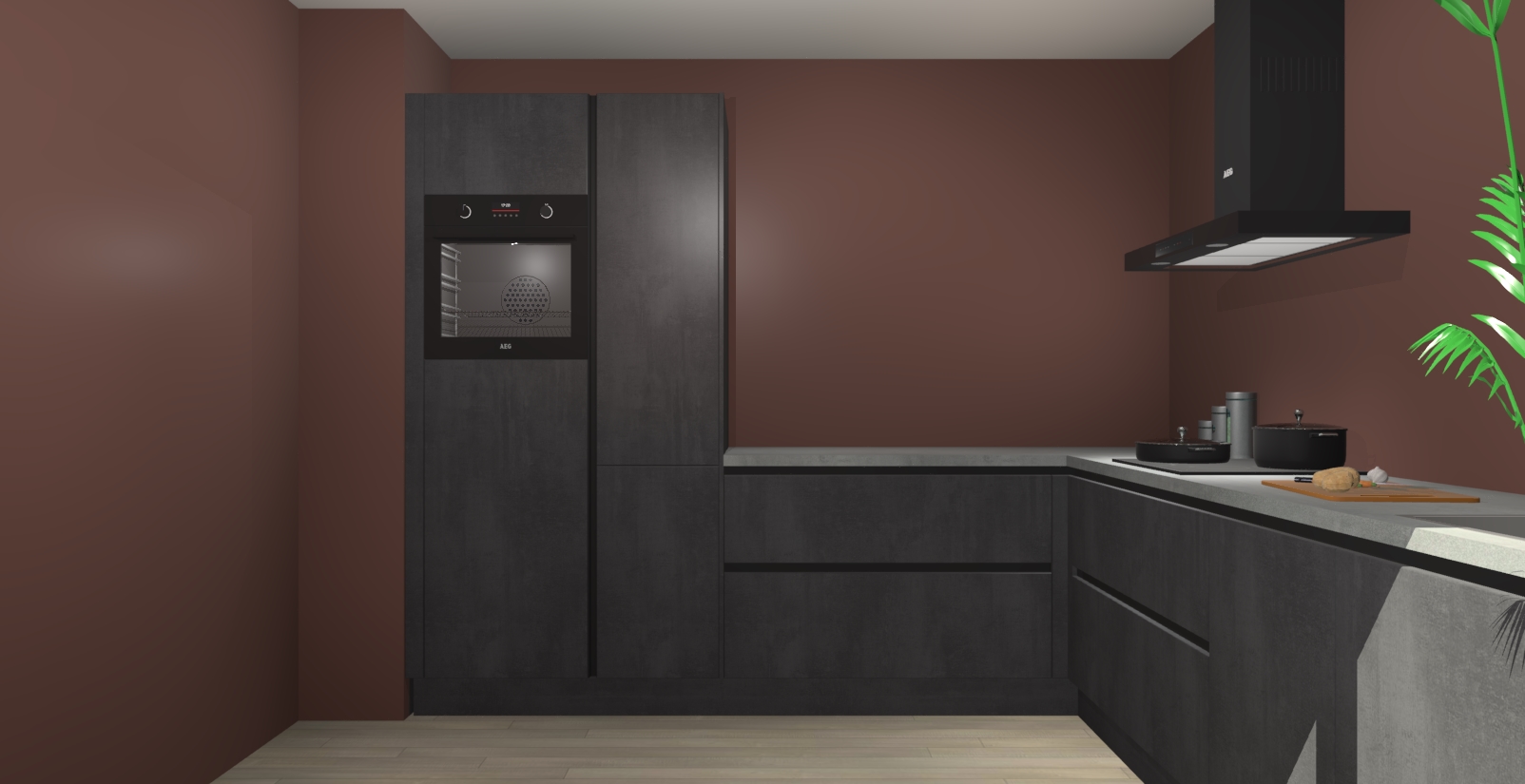 Laat u verrassen door de nieuwste en meest innovatieve keuken van dit moment: De Beton Zwarte greeploze keuken Antibes. Deze chique keuken straalt een stijlvolle sfeer uit die zeker bewondering zal oogsten bij uw gasten. Als u op zoek bent naar voldoende opbergruimte voor al uw keukengadgets en -gerei, dan is dit de perfecte oplossing. Met ingebouwde apparatuur zoals een oven, inductiekookplaat, afzuigkap, vaatwasser en koelkast! U krijgt niet alleen veel opbergruimte, maar ook een betrouwbaar soft close-deursysteem dat ervoor zorgt dat er nooit meer kastdeuren dichtslaan!