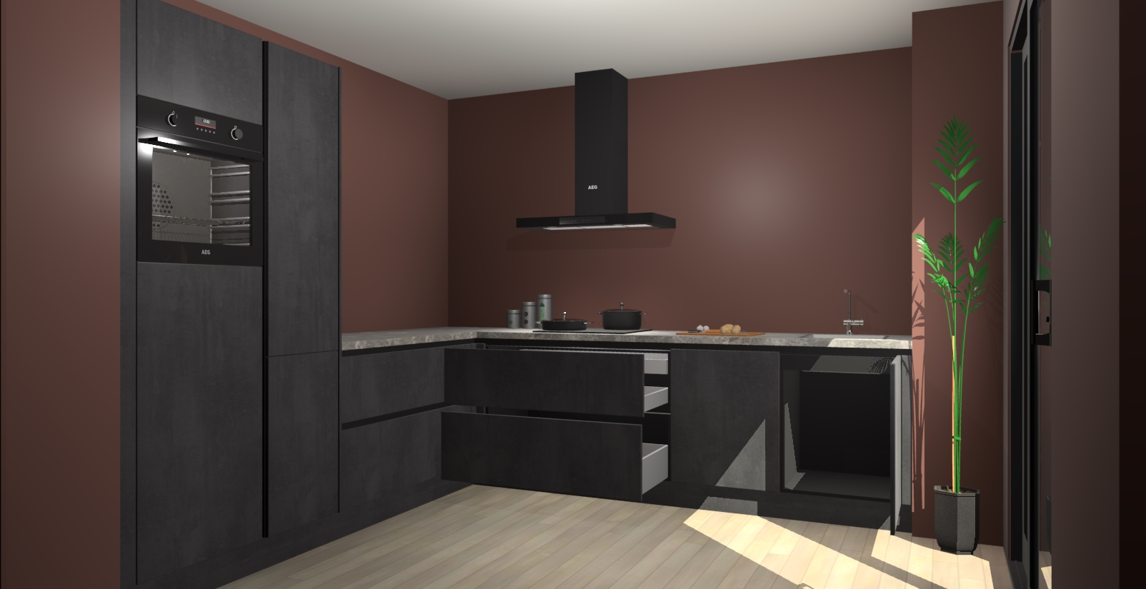 Laat u verrassen door de nieuwste en meest innovatieve keuken van dit moment: De Beton Zwarte greeploze keuken Antibes. Deze chique keuken straalt een stijlvolle sfeer uit die zeker bewondering zal oogsten bij uw gasten. Als u op zoek bent naar voldoende opbergruimte voor al uw keukengadgets en -gerei, dan is dit de perfecte oplossing. Met ingebouwde apparatuur zoals een oven, inductiekookplaat, afzuigkap, vaatwasser en koelkast! U krijgt niet alleen veel opbergruimte, maar ook een betrouwbaar soft close-deursysteem dat ervoor zorgt dat er nooit meer kastdeuren dichtslaan!