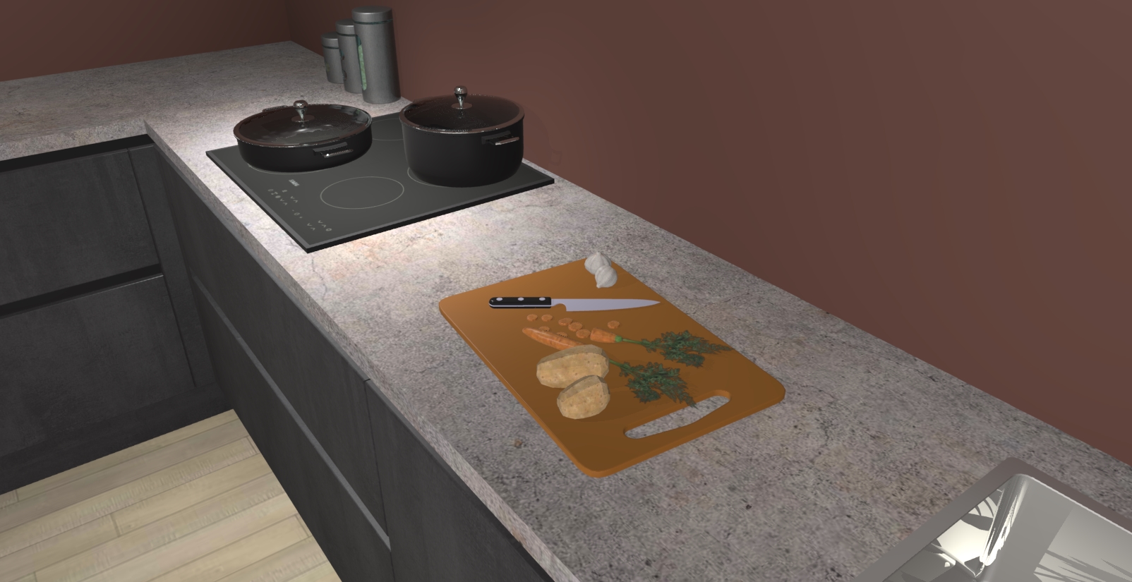 Inclusief plinten, stelpoten en werkblad