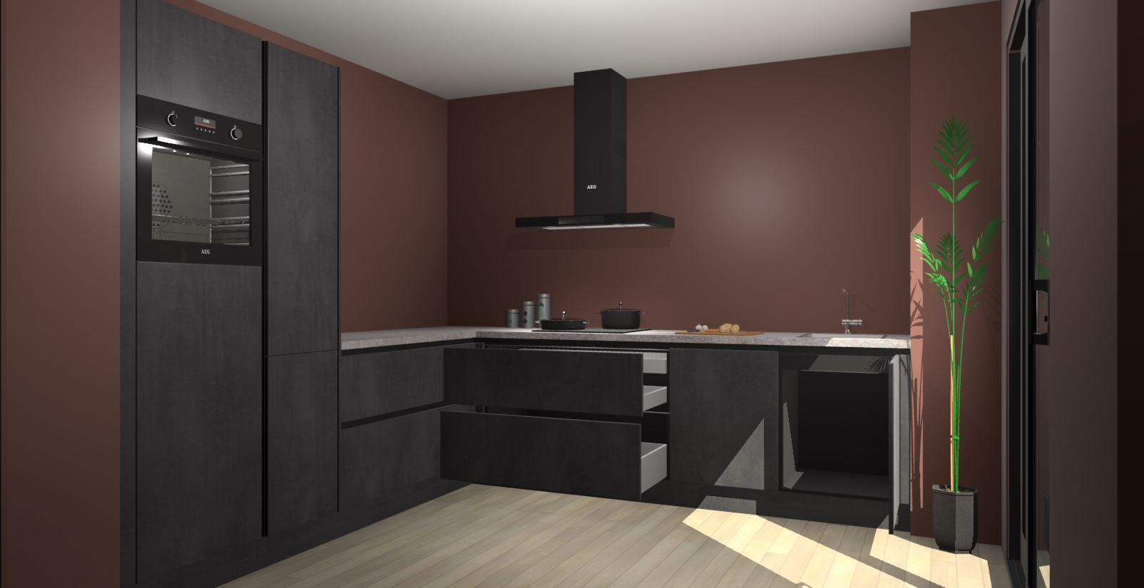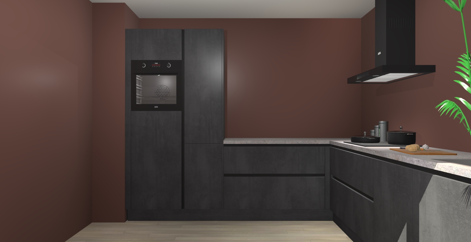 Laat u verrassen door de nieuwste en meest innovatieve keuken van dit moment: De Beton Zwarte greeploze keuken Antibes. Deze chique keuken straalt een stijlvolle sfeer uit die zeker bewondering zal oogsten bij uw gasten. Als u op zoek bent naar voldoende opbergruimte voor al uw keukengadgets en -gerei, dan is dit de perfecte oplossing. Met ingebouwde apparatuur zoals een oven, inductiekookplaat, afzuigkap, vaatwasser en koelkast! U krijgt niet alleen veel opbergruimte, maar ook een betrouwbaar soft close-deursysteem dat ervoor zorgt dat er nooit meer kastdeuren dichtslaan!