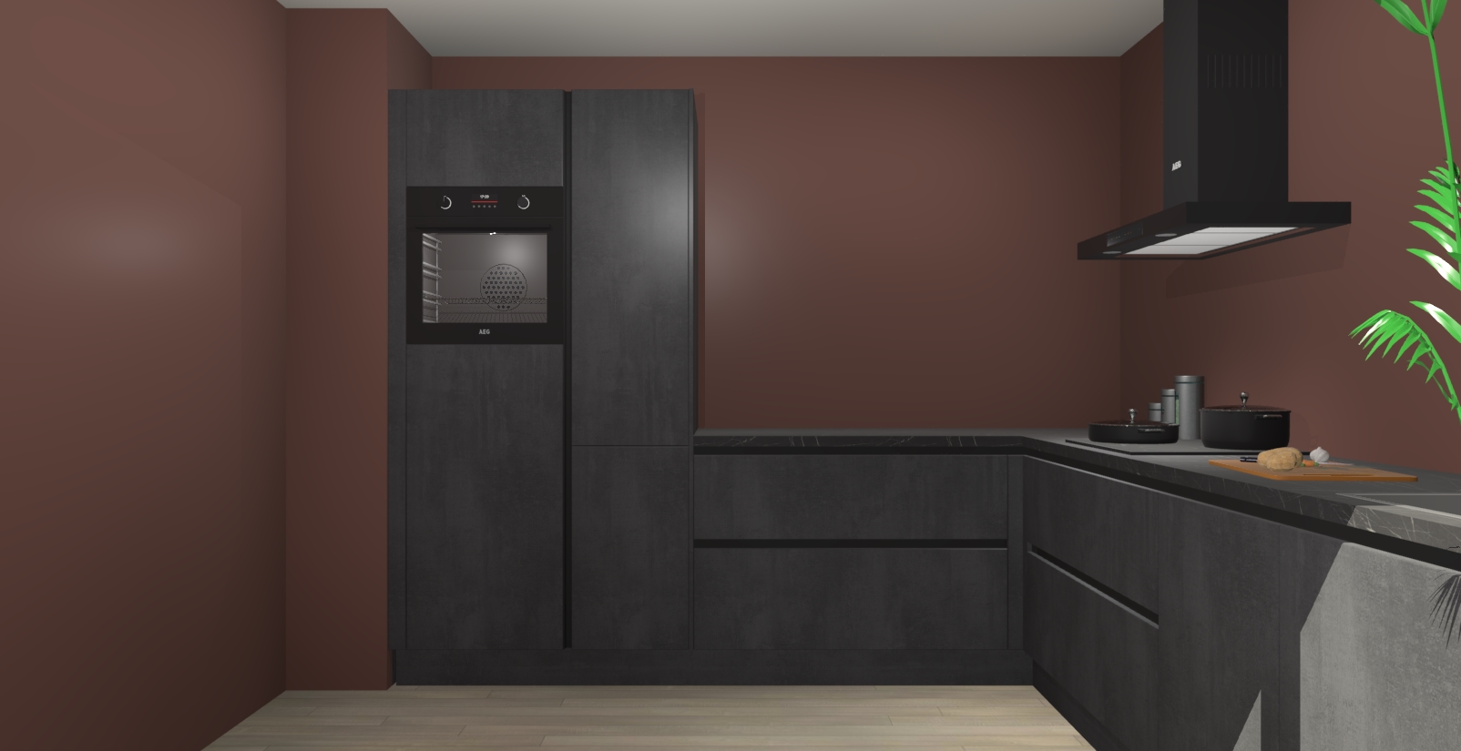 Laat u verrassen door de nieuwste en meest innovatieve keuken van dit moment: De Beton Zwarte greeploze keuken Antibes. Deze chique keuken straalt een stijlvolle sfeer uit die zeker bewondering zal oogsten bij uw gasten. Als u op zoek bent naar voldoende opbergruimte voor al uw keukengadgets en -gerei, dan is dit de perfecte oplossing. Met ingebouwde apparatuur zoals een oven, inductiekookplaat, afzuigkap, vaatwasser en koelkast! U krijgt niet alleen veel opbergruimte, maar ook een betrouwbaar soft close-deursysteem dat ervoor zorgt dat er nooit meer kastdeuren dichtslaan!
