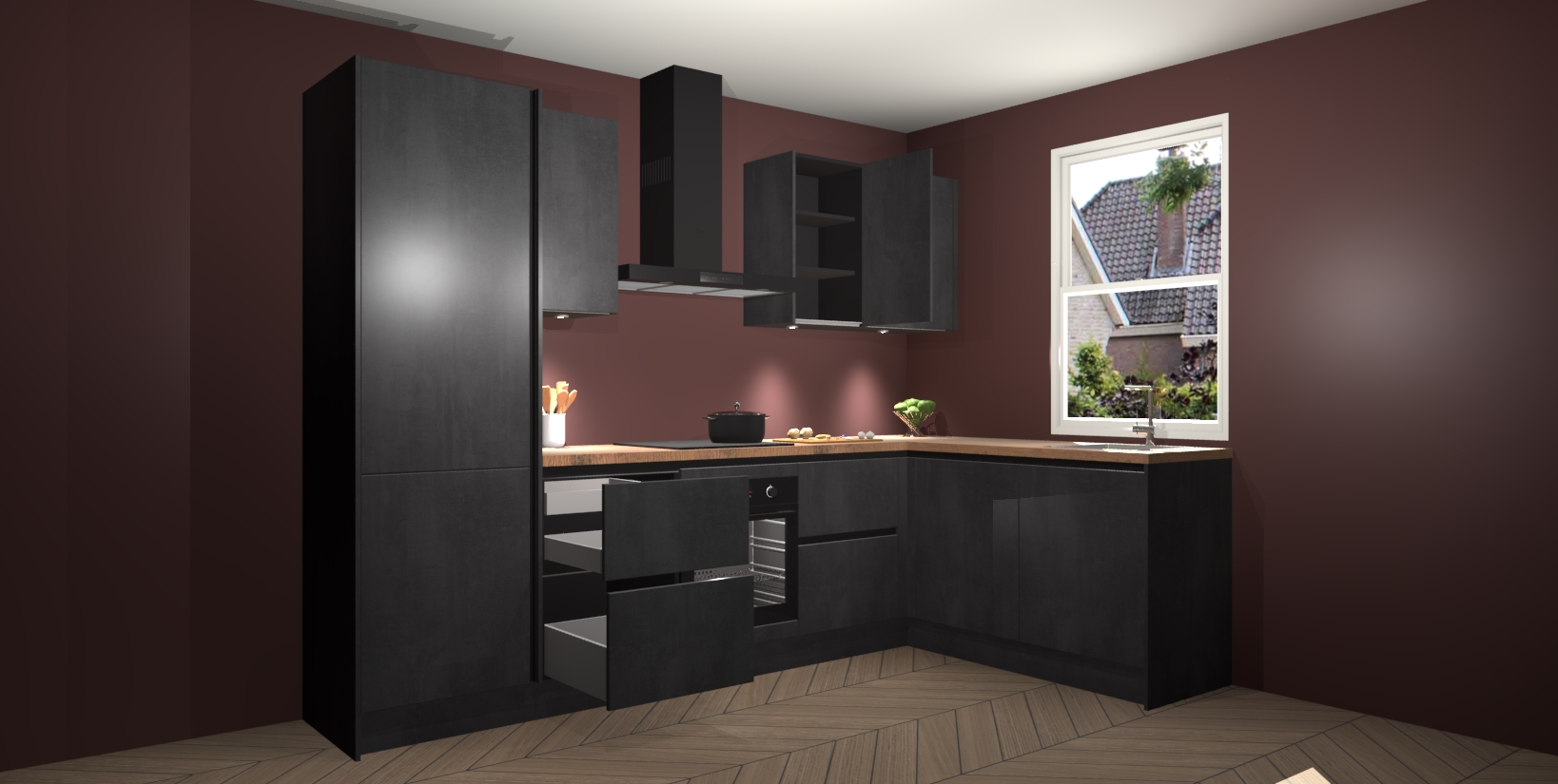 Maak kennis met de trendsettende en luxe Beton Zwarte greeploze keuken Bazel! Deze uitzonderlijke keuken van Duitse kwaliteit is stijlvol, modern en perfect om elk huis mee op te fleuren. De binnenkant van de kasten worden meegenomen in een bijpassende kleur om een samenhangende eigentijdse esthetiek te voltooien. U zult dol zijn op hoe uw pas gerenoveerde keuken eruitziet met de Beton Zwarte editie!