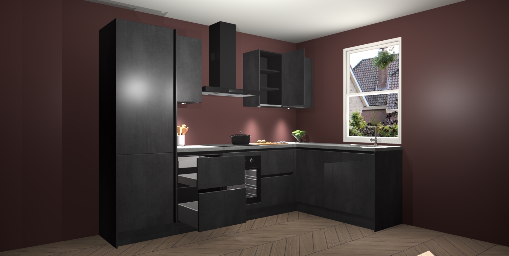 Maak kennis met de trendsettende en luxe Beton Zwarte greeploze keuken Bazel! Deze uitzonderlijke keuken van Duitse kwaliteit is stijlvol, modern en perfect om elk huis mee op te fleuren. De binnenkant van de kasten worden meegenomen in een bijpassende kleur om een samenhangende eigentijdse esthetiek te voltooien. U zult dol zijn op hoe uw pas gerenoveerde keuken eruitziet met de Beton Zwarte editie!