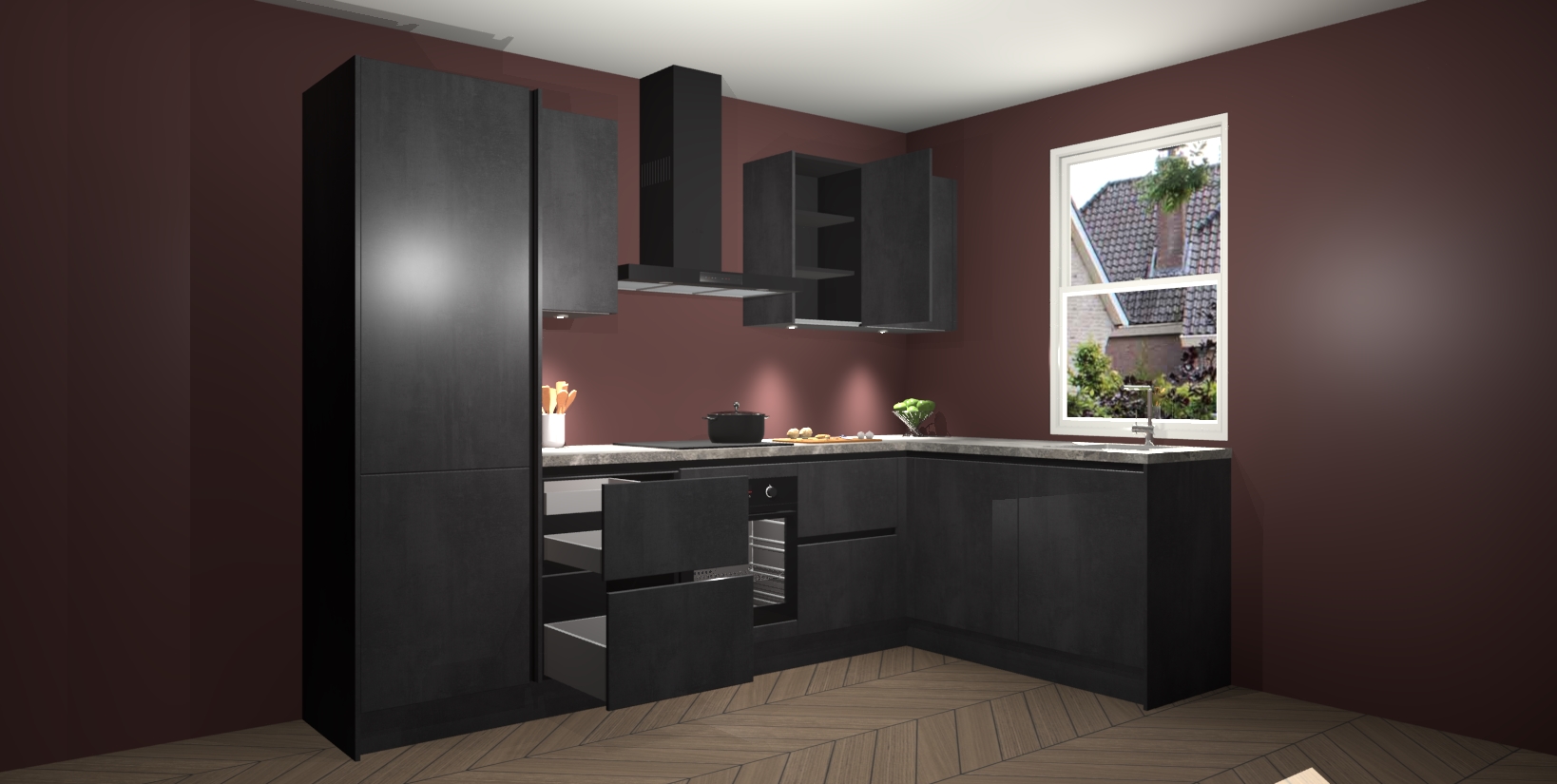 Maak kennis met de trendsettende en luxe Beton Zwarte greeploze keuken Bazel! Deze uitzonderlijke keuken van Duitse kwaliteit is stijlvol, modern en perfect om elk huis mee op te fleuren. De binnenkant van de kasten worden meegenomen in een bijpassende kleur om een samenhangende eigentijdse esthetiek te voltooien. U zult dol zijn op hoe uw pas gerenoveerde keuken eruitziet met de Beton Zwarte editie!