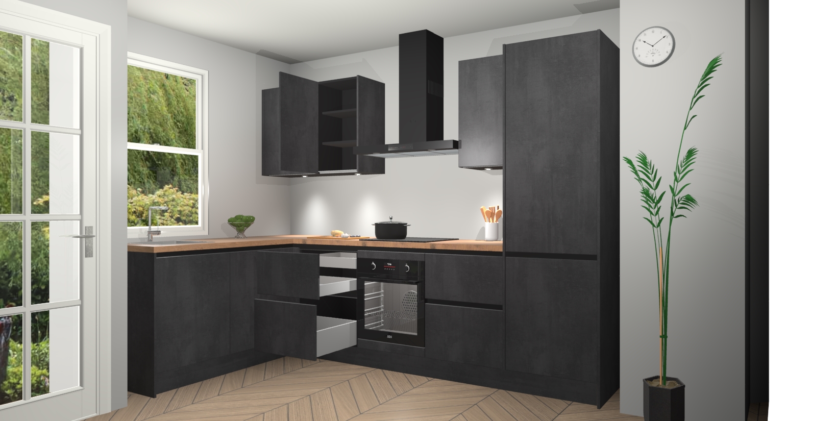 Bent u op zoek naar een strakke, moderne hoekkeuken die uw huis oppept en een moderne uitstraling geeft? Kijk dan niet verder dan de beton zwarte greeploze keuken Beijing. Deze verbluffende hoekkeuken tilt hedendaags design naar een hoger niveau. Qua stijl is deze chique hoekkeuken voorzien van beton zwarte accenten, om een strakke maar opvallende look te creëren. De binnenkant van de kasten is afgewerkt in dezelfde prachtige beton zwarte kleur voor extra esthetische aantrekkingskracht.