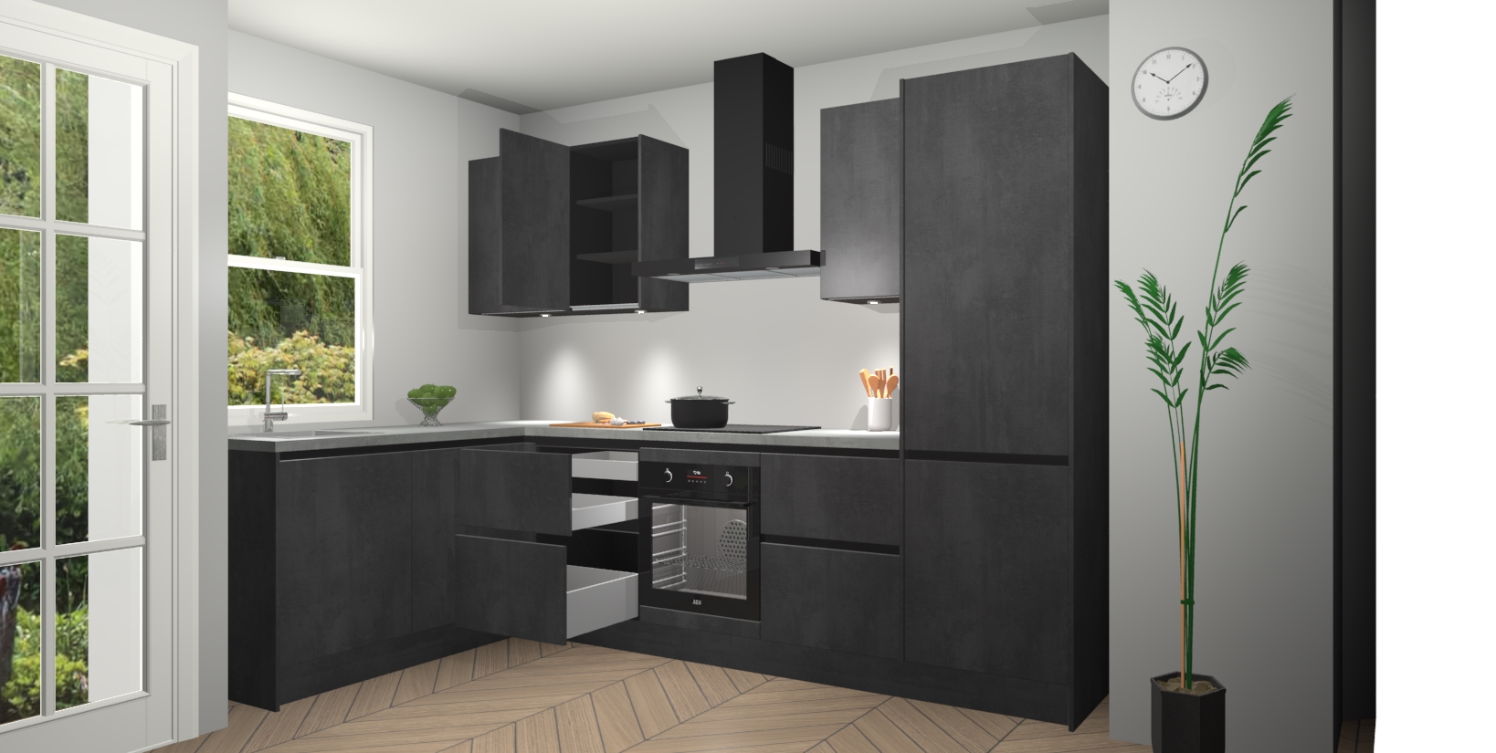 Bent u op zoek naar een strakke, moderne hoekkeuken die uw huis oppept en een moderne uitstraling geeft? Kijk dan niet verder dan de beton zwarte greeploze keuken Beijing. Deze verbluffende hoekkeuken tilt hedendaags design naar een hoger niveau. Qua stijl is deze chique hoekkeuken voorzien van beton zwarte accenten, om een strakke maar opvallende look te creëren. De binnenkant van de kasten is afgewerkt in dezelfde prachtige beton zwarte kleur voor extra esthetische aantrekkingskracht.