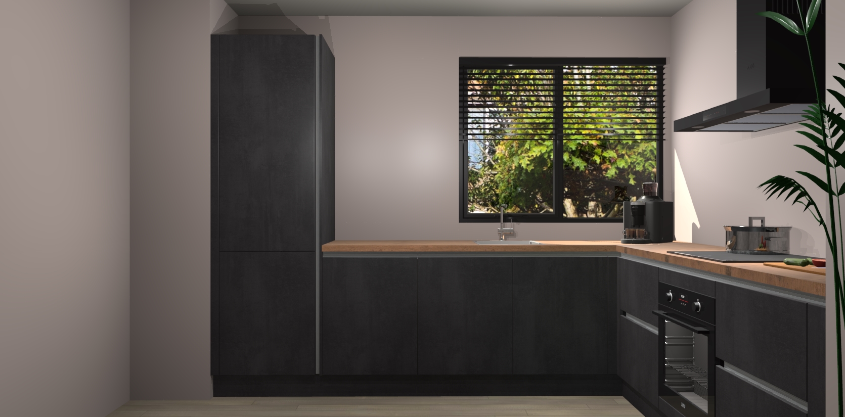 Wij presenteren de revolutie in keukens: de Beton Zwarte greeploze keuken Benidorm. Met modern design, een tijdloos uiterlijk en kasten die al voor gemonteerd worden geleverd, laat deze stijlvolle keuken uw kookervaring op een hele nieuwe manier transformeren.