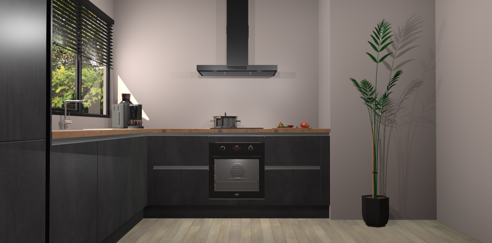 Met een modern, tijdloos design en ruime opslagruimte, zult u zich in no-time thuis voelen in uw nieuwe keuken. Uw leven wordt eenvoudiger met de soft-close deuren die voor het ultieme stille comfort zorgen - geen geluid dat u stoort terwijl u kookt. Ook is de keuken voorzien van 5 ingebouwde apparaten: een oven, inductie kookplaat, afzuigkap, vaatwasser en koelkast. Deze kunnen gemakkelijk na bestelling worden bijgewerkt naar AEG - waardoor uw luxe ervaring compleet is.