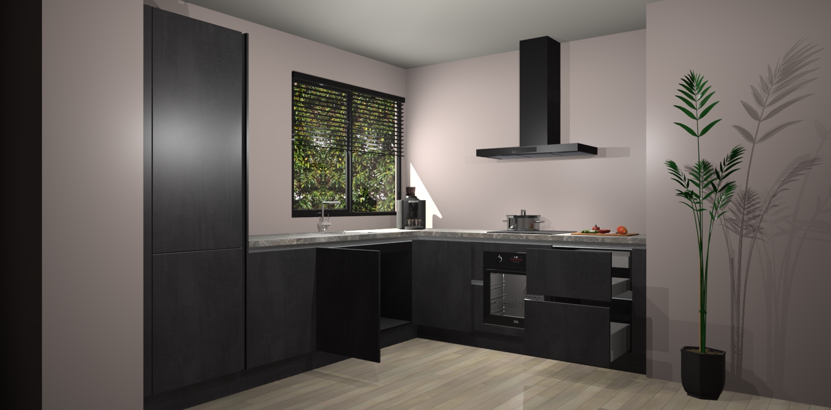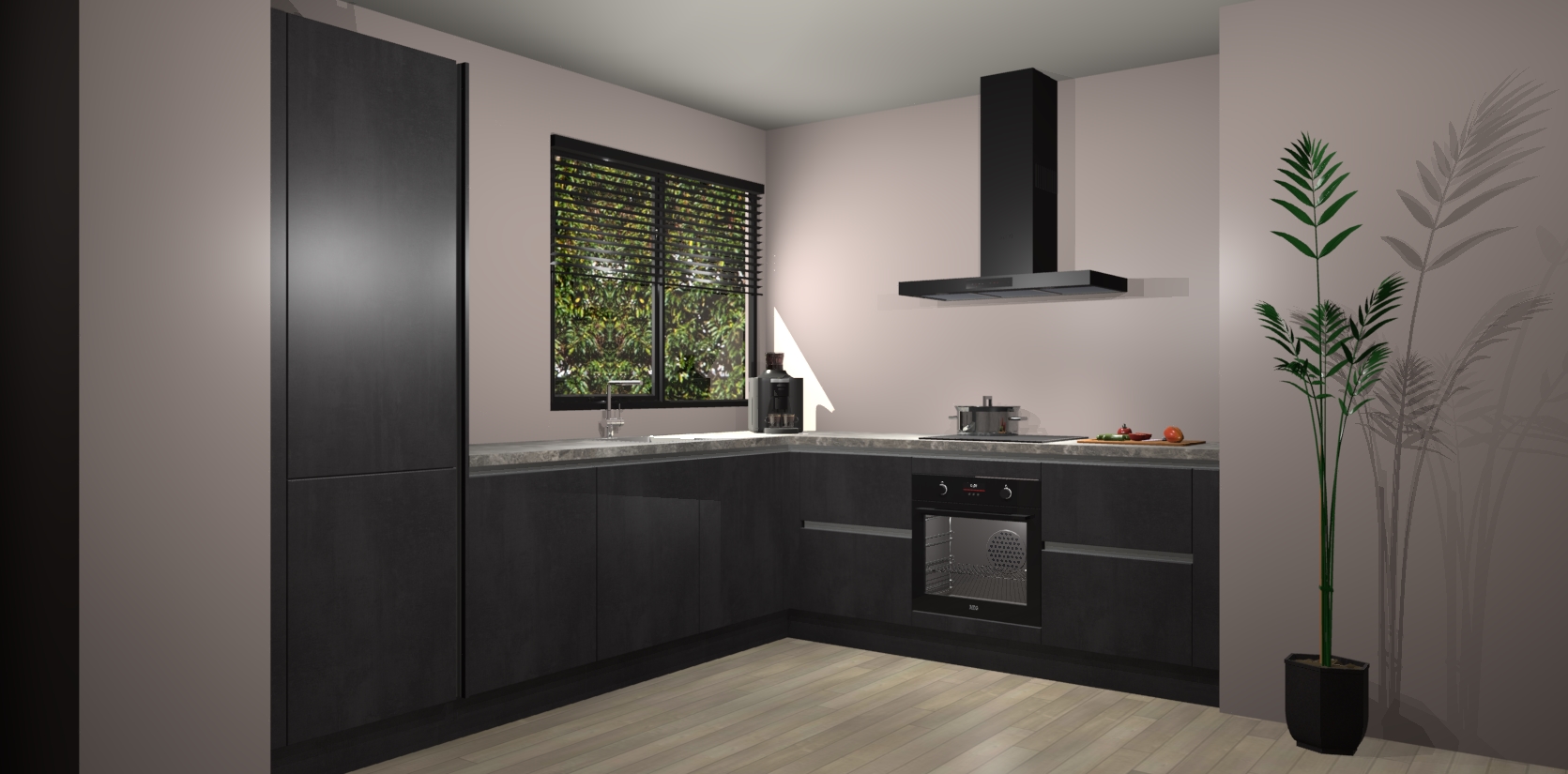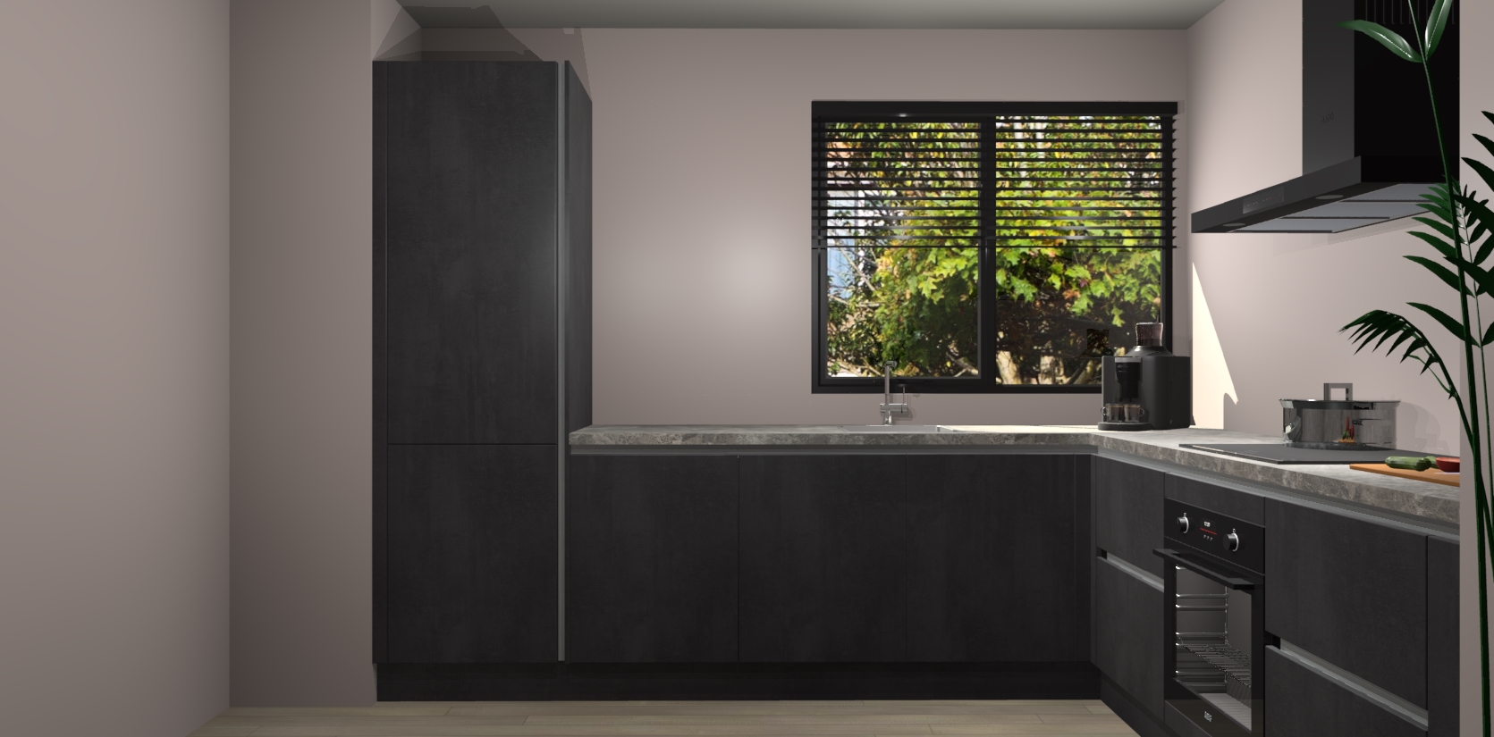 Wij presenteren de revolutie in keukens: de Beton Zwarte greeploze keuken Benidorm. Met modern design, een tijdloos uiterlijk en kasten die al voor gemonteerd worden geleverd, laat deze stijlvolle keuken uw kookervaring op een hele nieuwe manier transformeren.