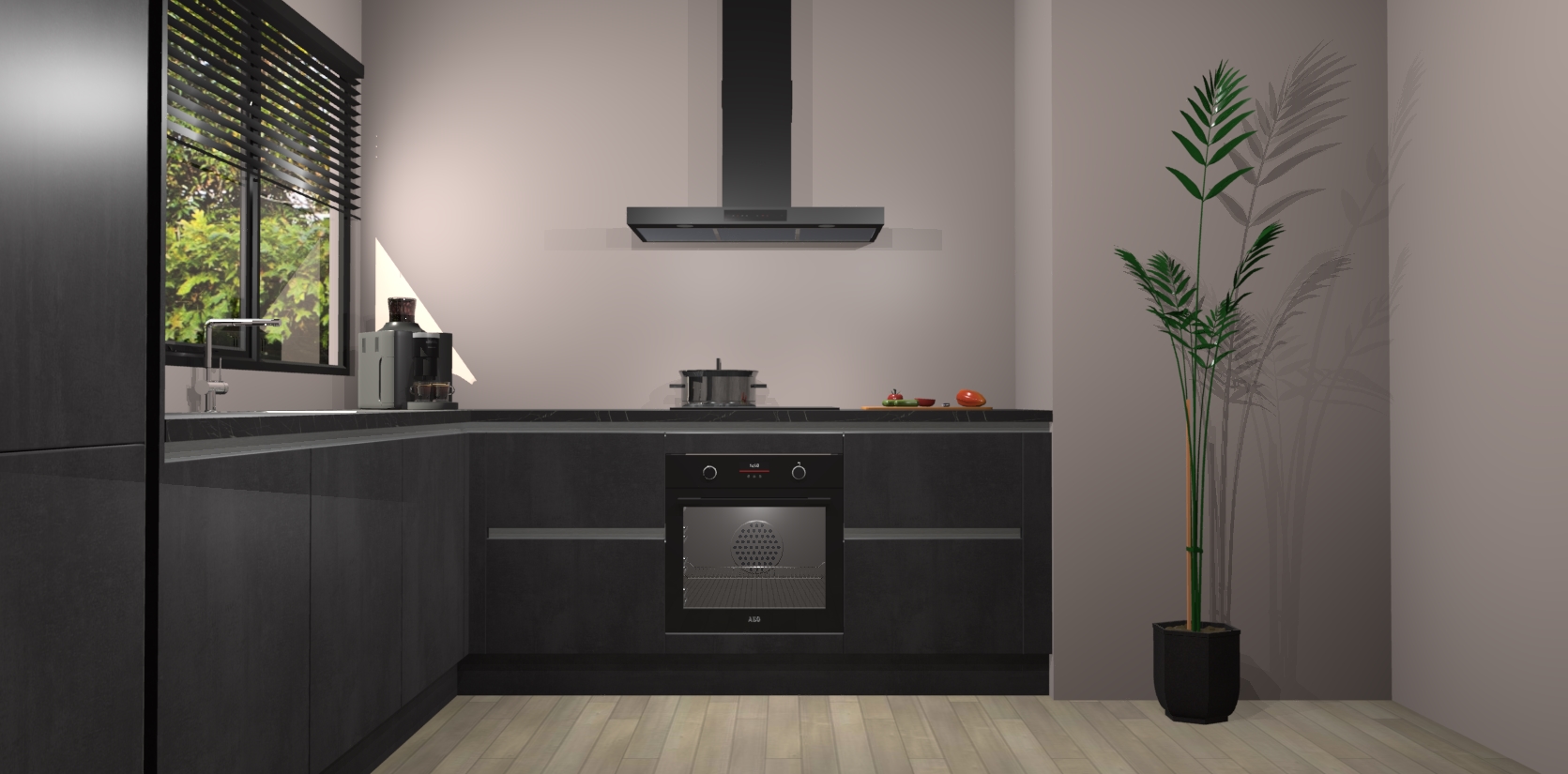 Met een modern, tijdloos design en ruime opslagruimte, zult u zich in no-time thuis voelen in uw nieuwe keuken. Uw leven wordt eenvoudiger met de soft-close deuren die voor het ultieme stille comfort zorgen - geen geluid dat u stoort terwijl u kookt. Ook is de keuken voorzien van 5 ingebouwde apparaten: een oven, inductie kookplaat, afzuigkap, vaatwasser en koelkast. Deze kunnen gemakkelijk na bestelling worden bijgewerkt naar AEG - waardoor uw luxe ervaring compleet is.