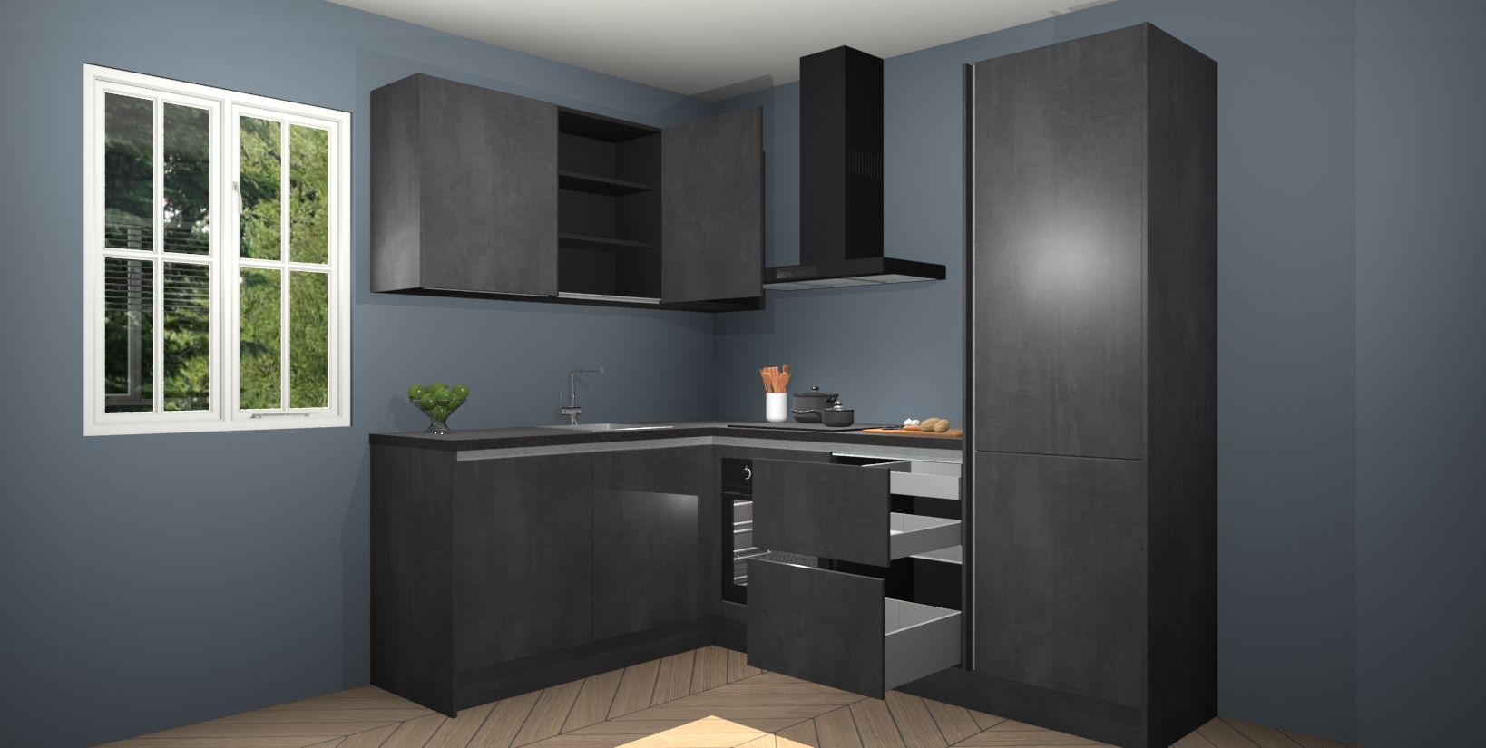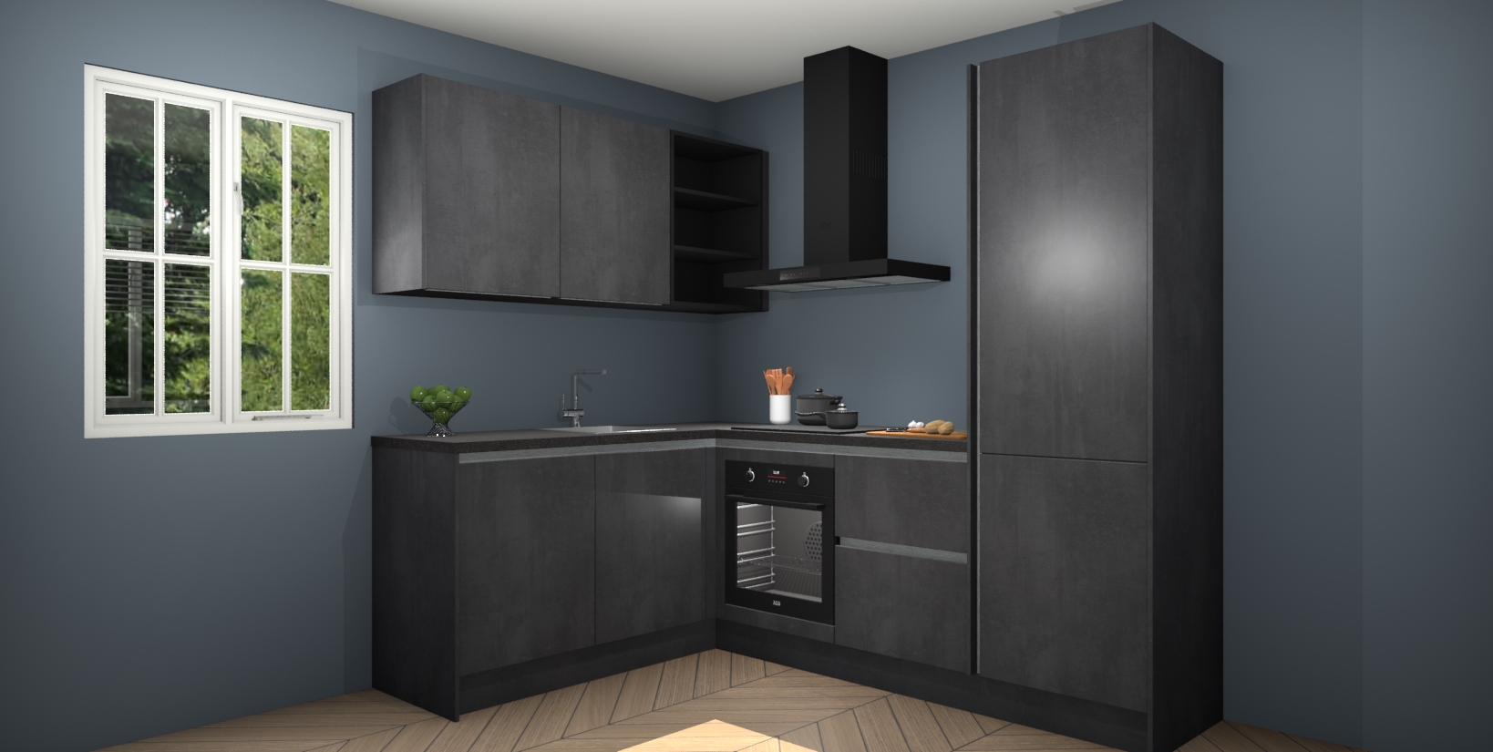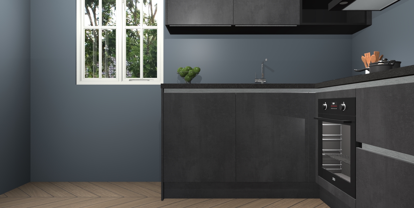 Maak kennis met de Beton Zwarte greeploze keuken Boekarest, een moderne hoekkeuken waar al uw vrienden en familie jaloers op zullen zijn! Het verbluffende mooie ontwerp past in elk interieur en is een ideale keuze voor wie op zoek is naar een klassieke, maar verfijnde look.