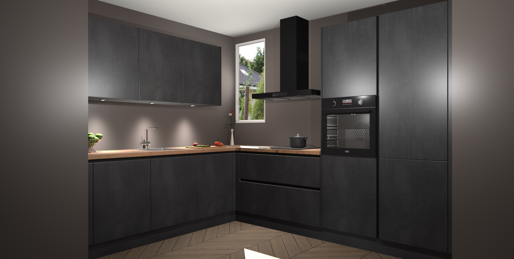 Inclusief plinten, stelpoten en werkblad