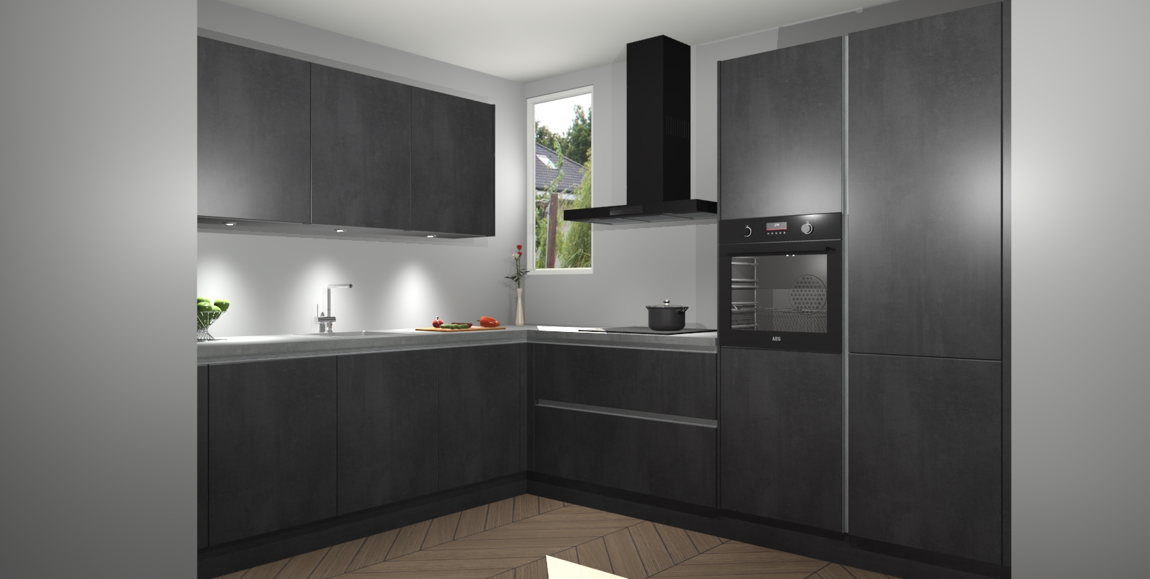 Maak u keuken elegant en verfijnd met de beton zwarte greeploze keuken Buenos Aires! Dit prachtige stuk heeft warme kleuren voor een strak, modern gevoel dat u de adem zal benemen. De handgrepen heeft net als de binnenkant van de kasten dezelfde beton zwarte afwerking, waardoor alles er nog beter uitziet.