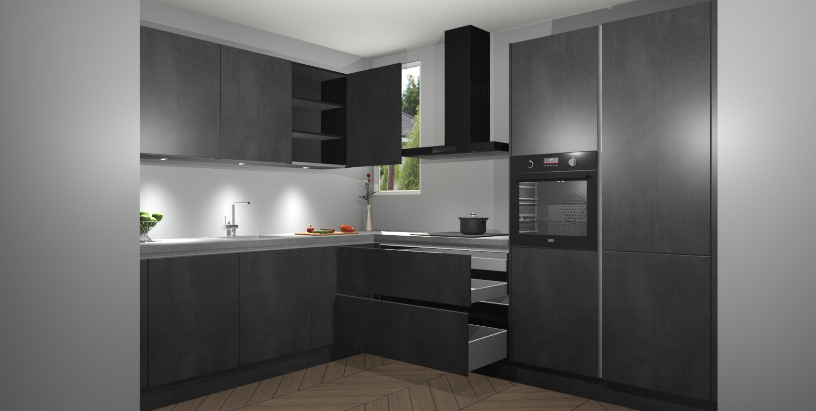 De ruime opbergruimte van dit model maakt het bereiden van voedsel en het gebruik van apparaten snel en gemakkelijk. Het beste van alles is dat het wordt geleverd met vijf inbouwapparaten: een oven, inductiekookplaat, afzuigkap, vaatwasser en koelkast - die allemaal gemakkelijk kunnen worden opgewaardeerd naar AEG na aankoop. Wat de gemaksfactor nog groter maakt, is het feit dat alle cabines voorgemonteerd worden geleverd, zodat u er meteen mee aan de slag kunt!
