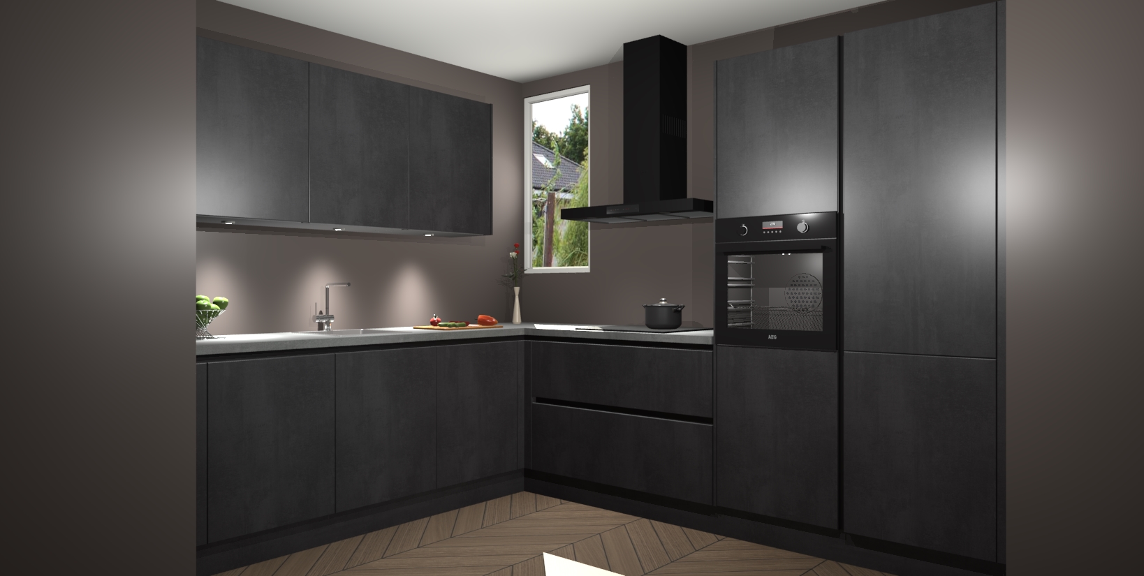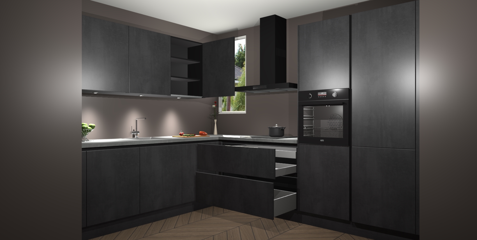 Maak u keuken elegant en verfijnd met de beton zwarte greeploze keuken Buenos Aires! Dit prachtige stuk heeft warme kleuren voor een strak, modern gevoel dat u de adem zal benemen. De handgrepen heeft net als de binnenkant van de kasten dezelfde beton zwarte afwerking, waardoor alles er nog beter uitziet.