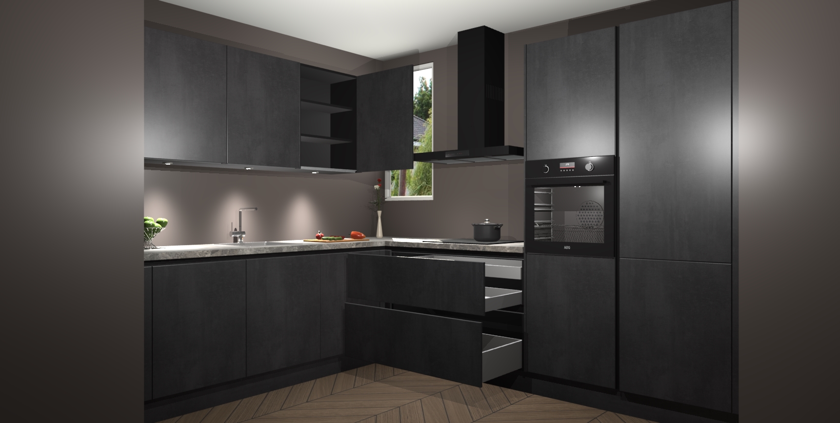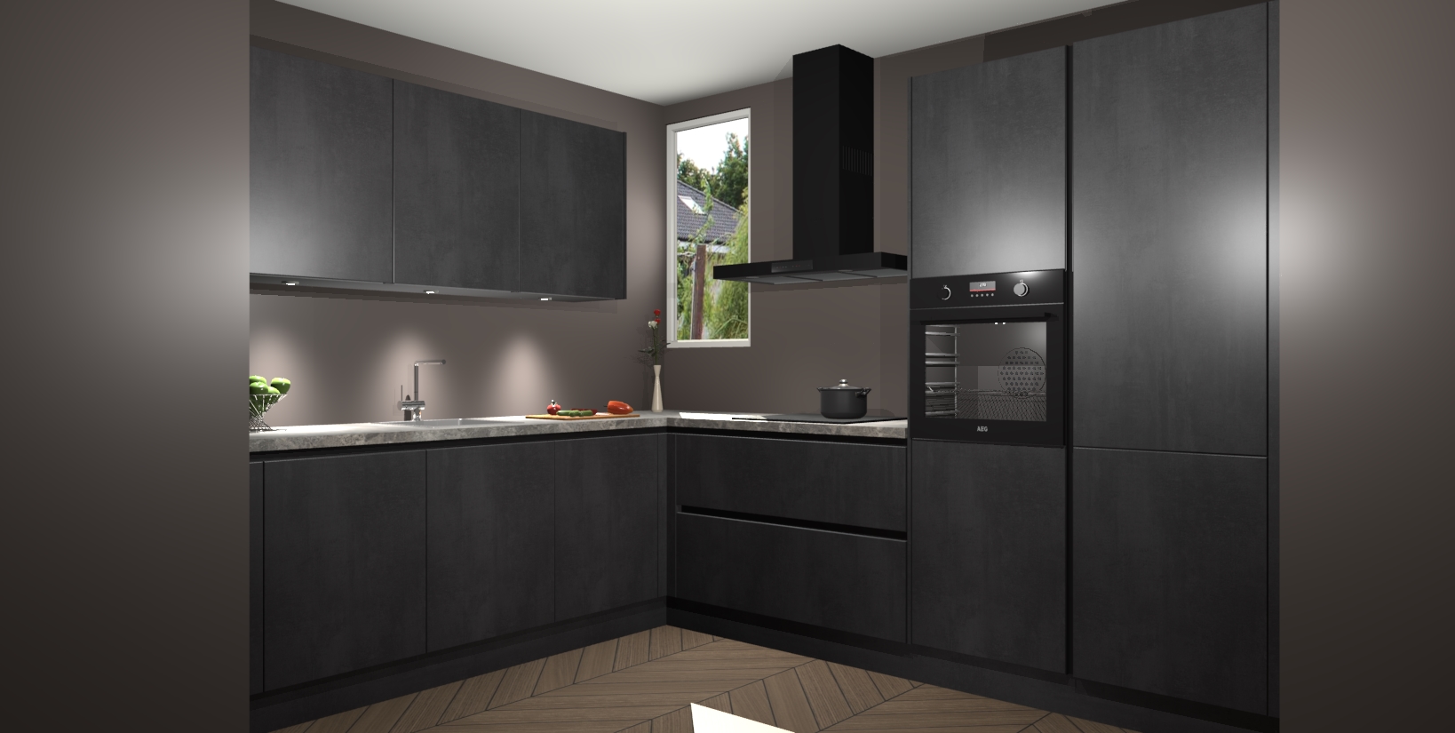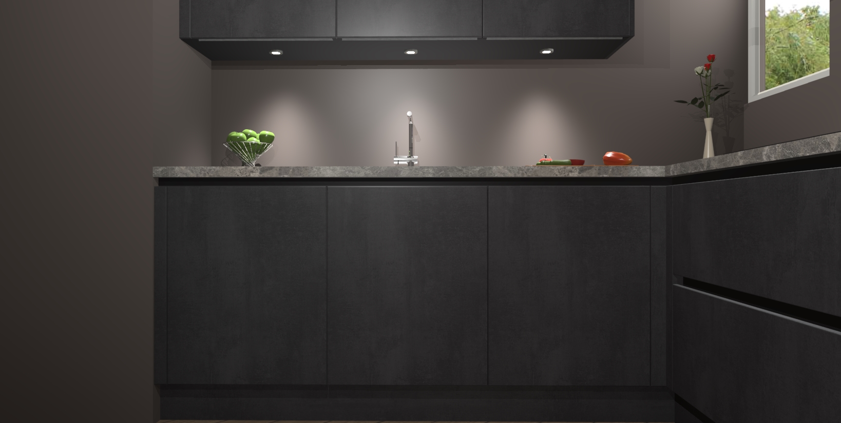 Maak u keuken elegant en verfijnd met de beton zwarte greeploze keuken Buenos Aires! Dit prachtige stuk heeft warme kleuren voor een strak, modern gevoel dat u de adem zal benemen. De handgrepen heeft net als de binnenkant van de kasten dezelfde beton zwarte afwerking, waardoor alles er nog beter uitziet.