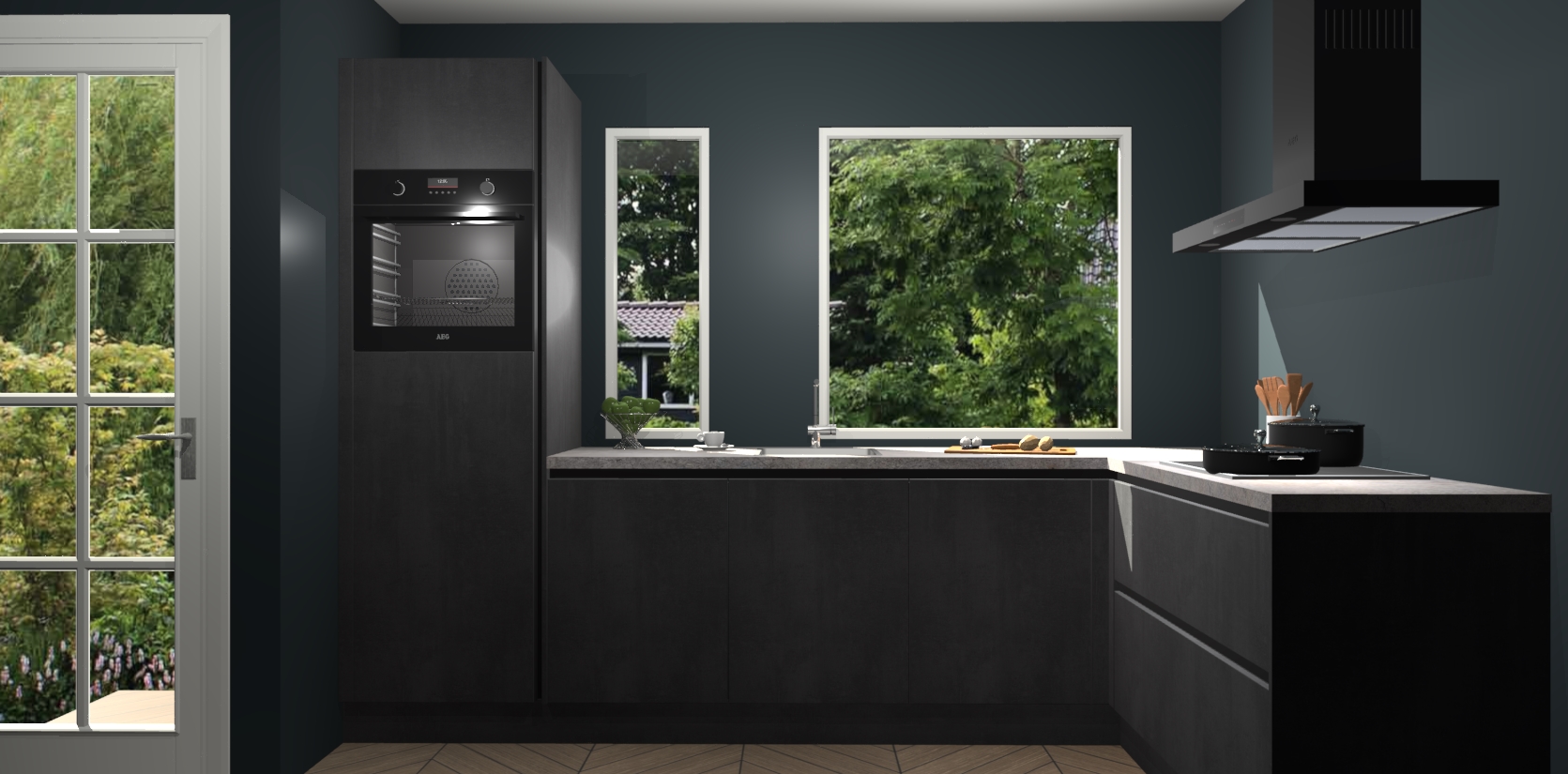 De beton zwarte greeploze keuken Cannes - de perfecte hoekkeuken voor elke ruimte! Onze combinatie van modern, tijdloos design en betrouwbare Duitse kwaliteit gecombineerd met een onverslaanbare prijs maken deze keuken een geweldige manier om uw huis te verbeteren en stijl toe te voegen.