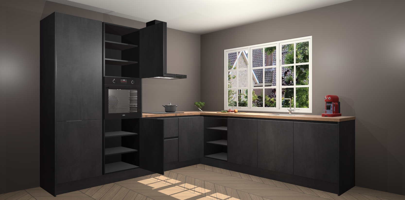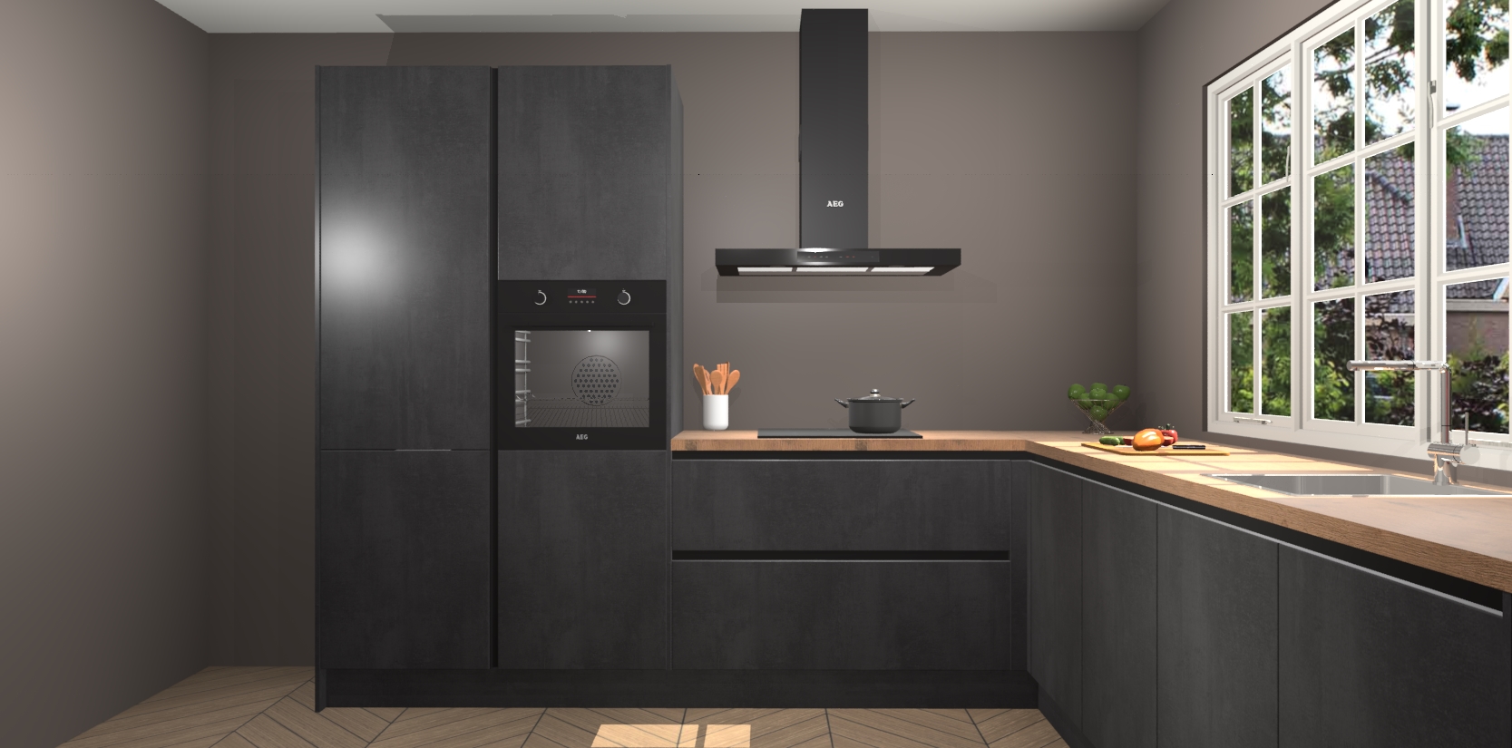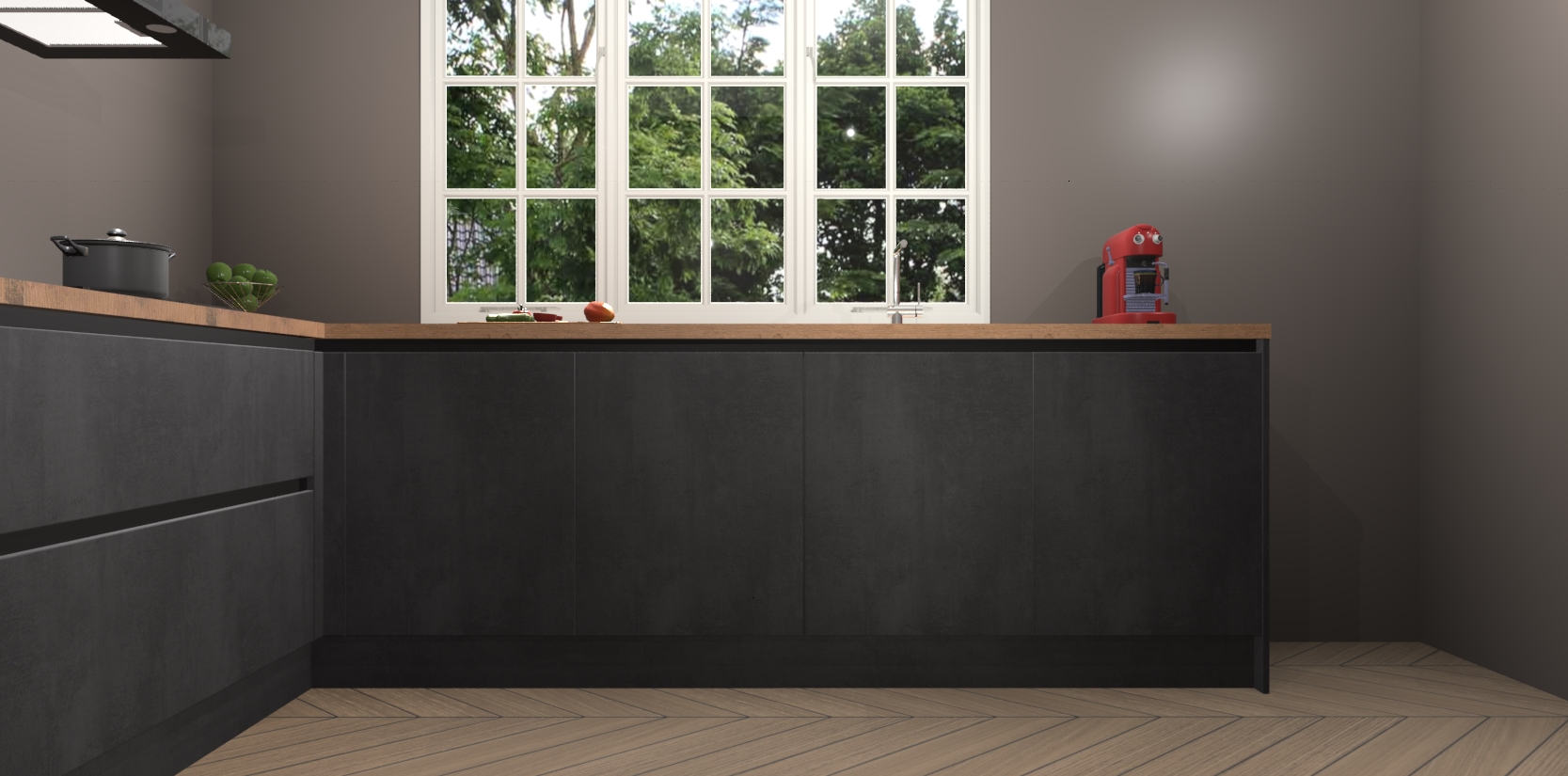 Welkom in de nieuwe wereld van een moderne keuken: de Beton Zwarte greeploze keuken Casablanca! Met dit innovatieve keukendesign haalt u de natuur naar binnen. Neem plaats aan uw hout-look keuken en voel u verbonden met de prachtige Beton Zwarte kleur. Zeer gebruiksvriendelijk, ervaring door prettige materialen en kleur die perfect aansluiten bij uw sfeerkeuze in huis.