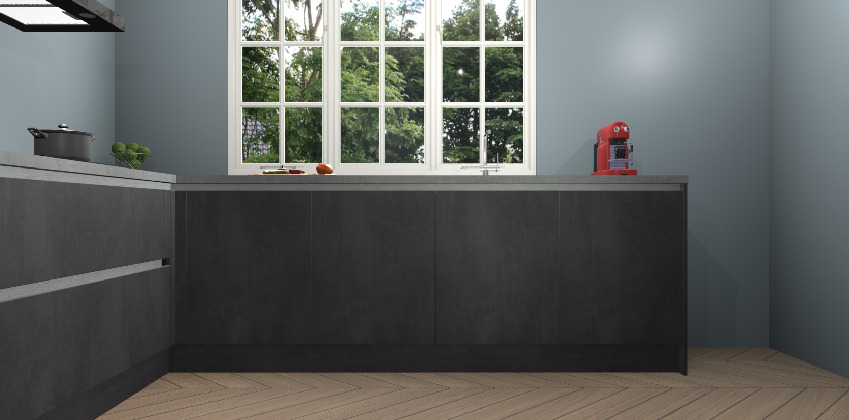 Welkom in de nieuwe wereld van een moderne keuken: de Beton Zwarte greeploze keuken Casablanca! Met dit innovatieve keukendesign haalt u de natuur naar binnen. Neem plaats aan uw hout-look keuken en voel u verbonden met de prachtige Beton Zwarte kleur. Zeer gebruiksvriendelijk, ervaring door prettige materialen en kleur die perfect aansluiten bij uw sfeerkeuze in huis.