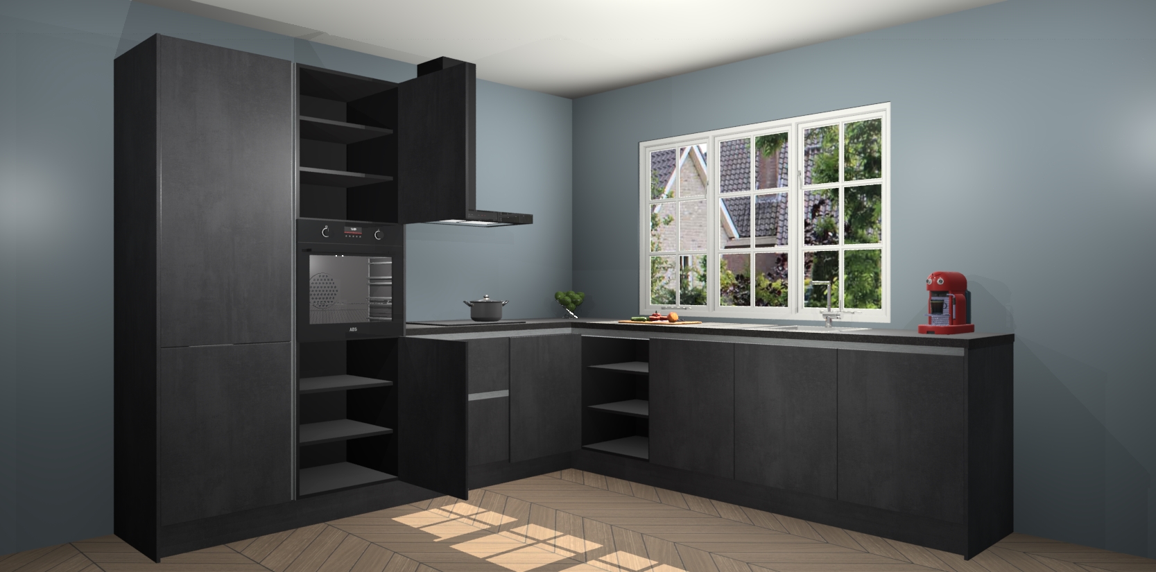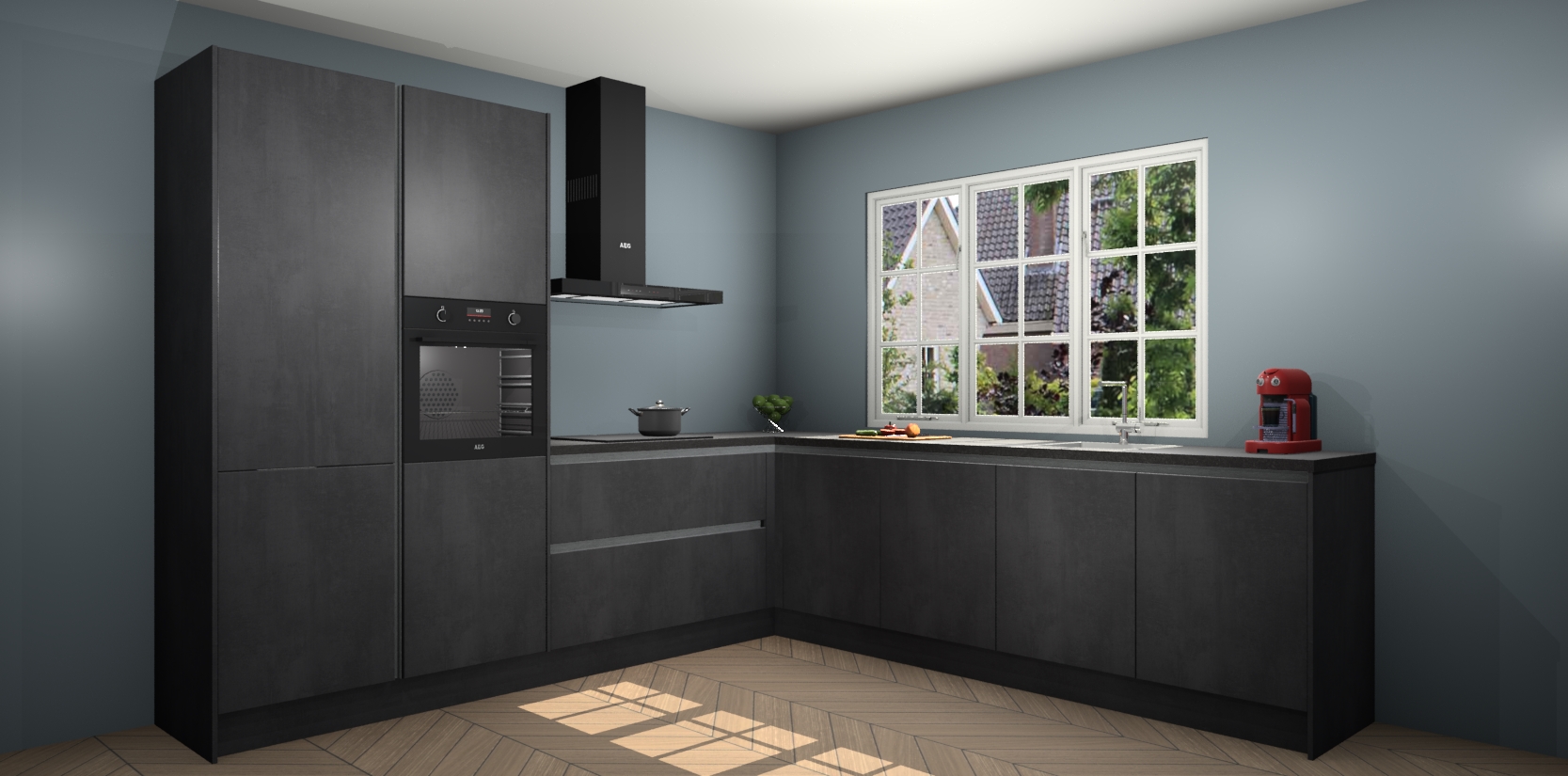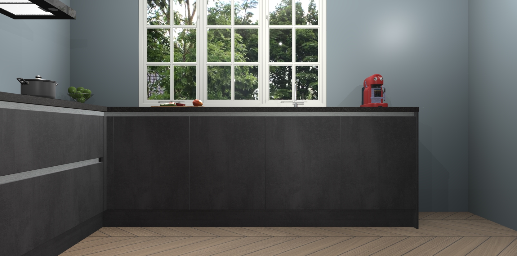 Welkom in de nieuwe wereld van een moderne keuken: de Beton Zwarte greeploze keuken Casablanca! Met dit innovatieve keukendesign haalt u de natuur naar binnen. Neem plaats aan uw hout-look keuken en voel u verbonden met de prachtige Beton Zwarte kleur. Zeer gebruiksvriendelijk, ervaring door prettige materialen en kleur die perfect aansluiten bij uw sfeerkeuze in huis.