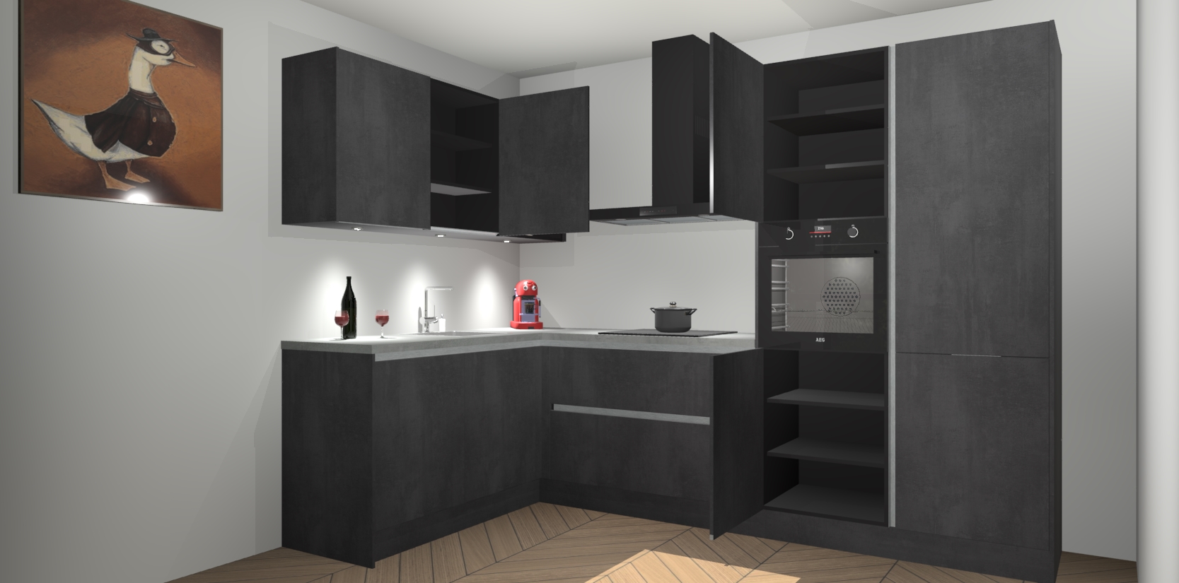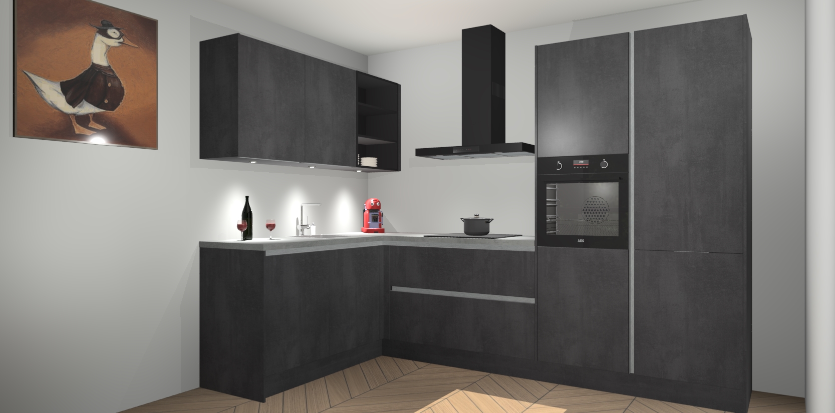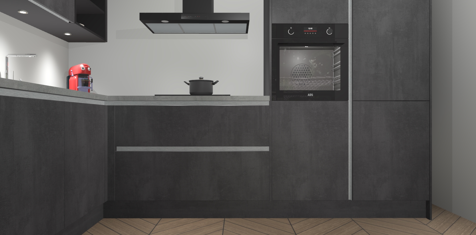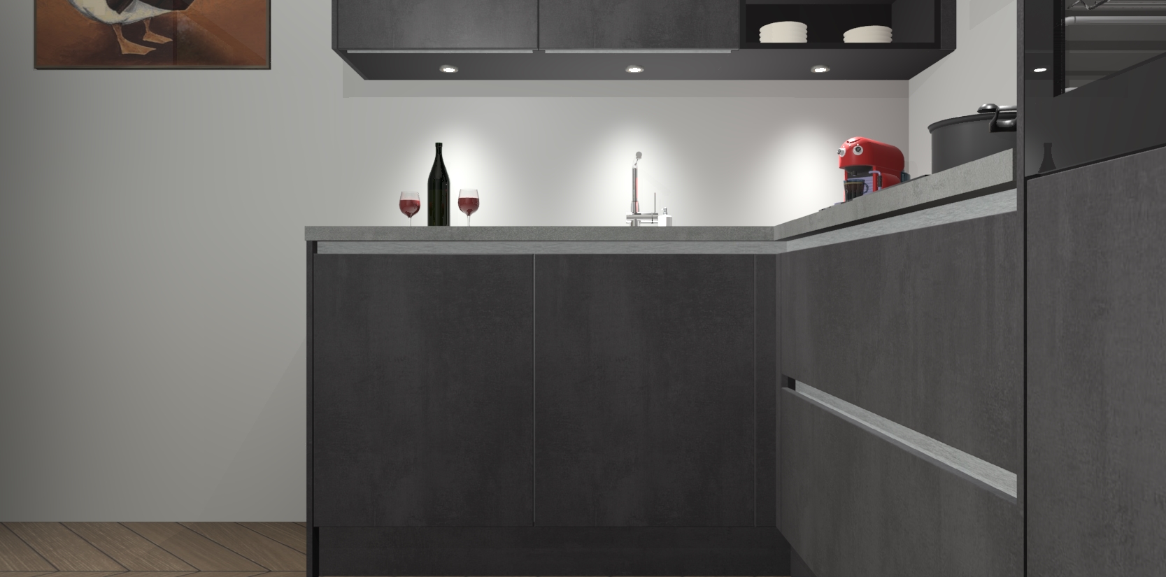 De Beton Zwarte greeploze keuken Cognac gaat alleen maar om de beste keukenervaring. Kies gewoon de beste apparatuur en ongeëvenaarde Duitse constructie die u thuis wilt hebben en verander uw huiskamer hartelijkheid meteen in professionaliteit. Laat de toon weten dat u gemakkelijk kan genieten van alle luxe die u verdiend? Bestel nu de Beton Zwarte greeploze keuken Cognac voor bij u thuis!