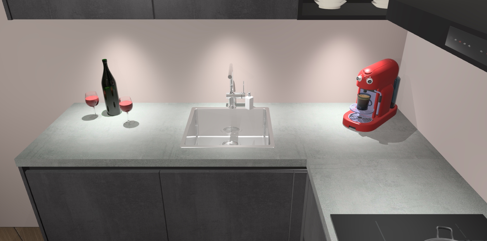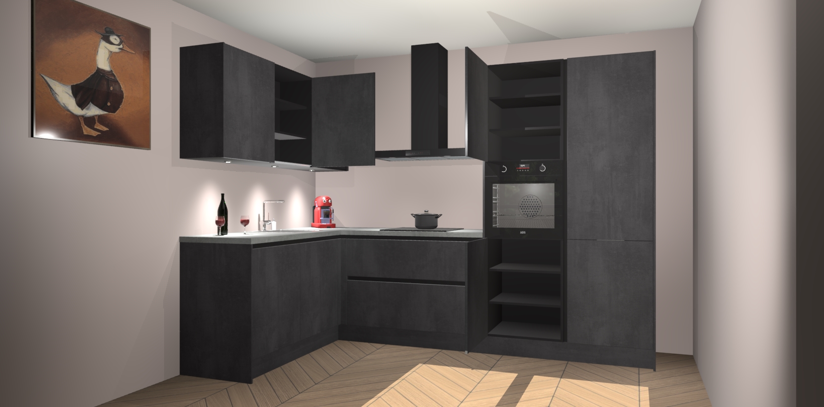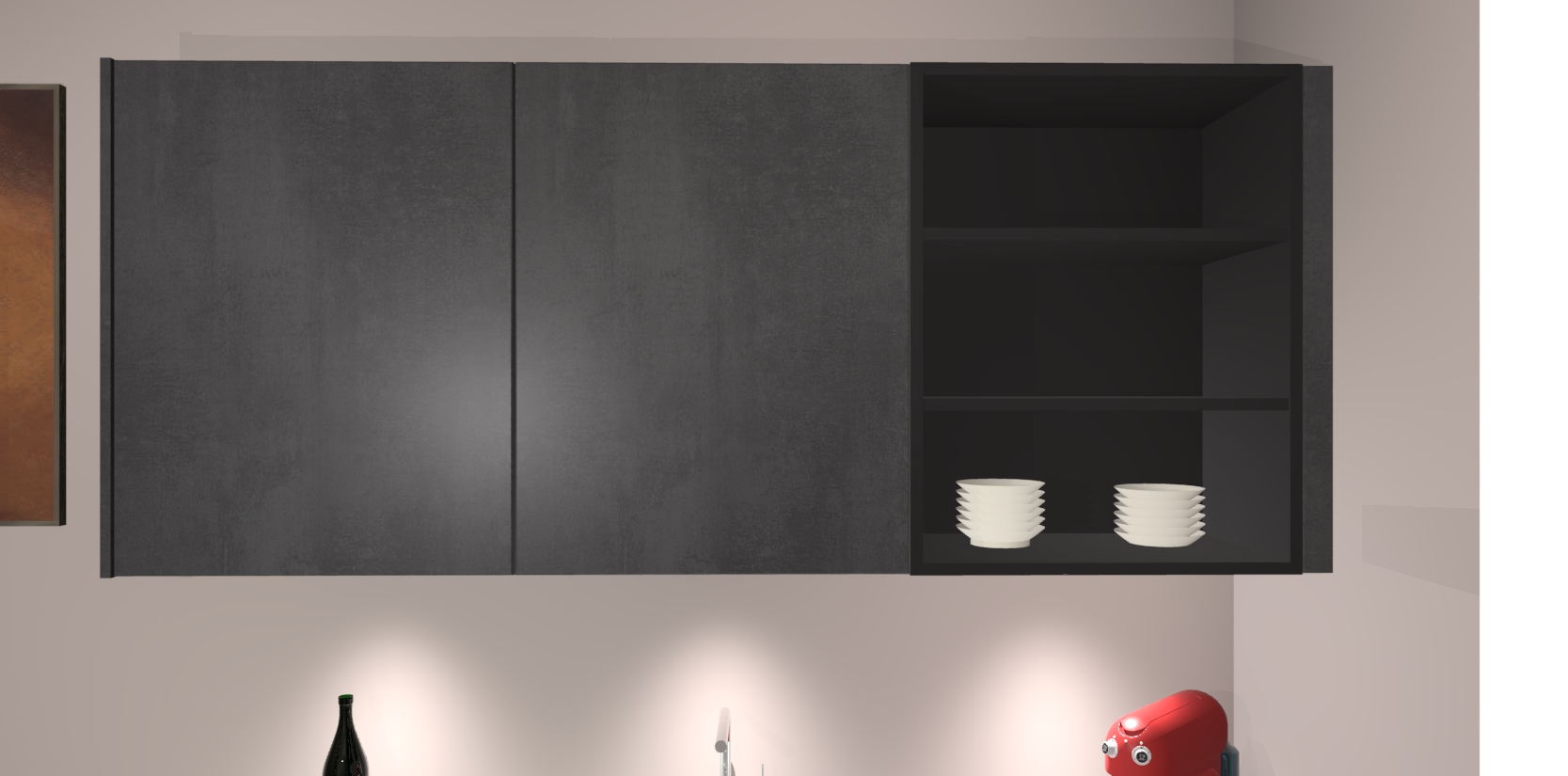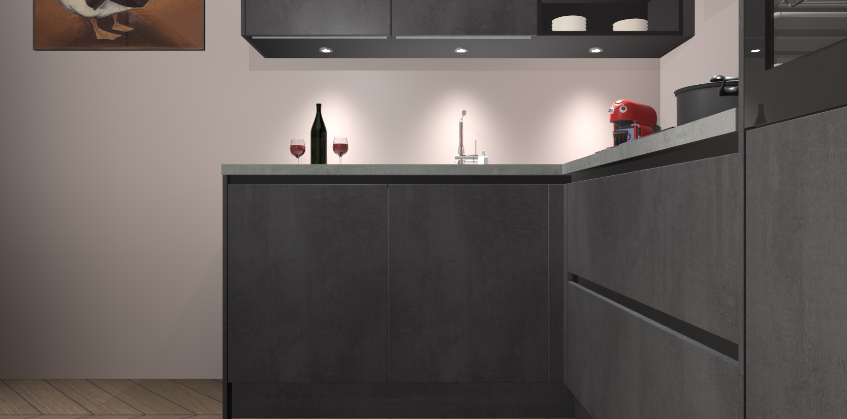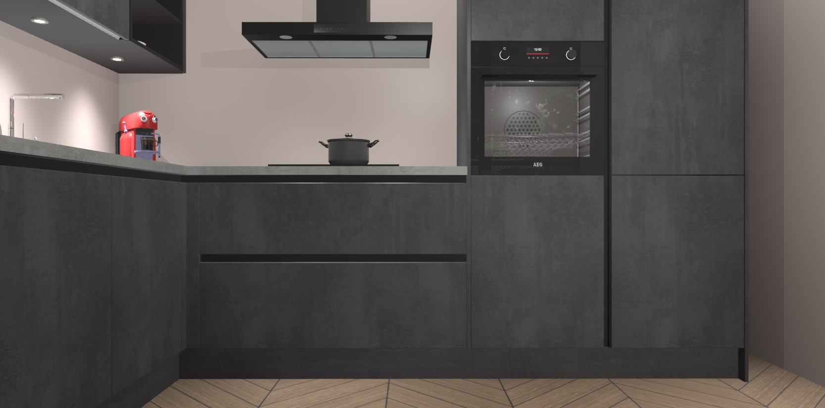 De Beton Zwarte greeploze keuken Cognac gaat alleen maar om de beste keukenervaring. Kies gewoon de beste apparatuur en ongeëvenaarde Duitse constructie die u thuis wilt hebben en verander uw huiskamer hartelijkheid meteen in professionaliteit. Laat de toon weten dat u gemakkelijk kan genieten van alle luxe die u verdiend? Bestel nu de Beton Zwarte greeploze keuken Cognac voor bij u thuis!