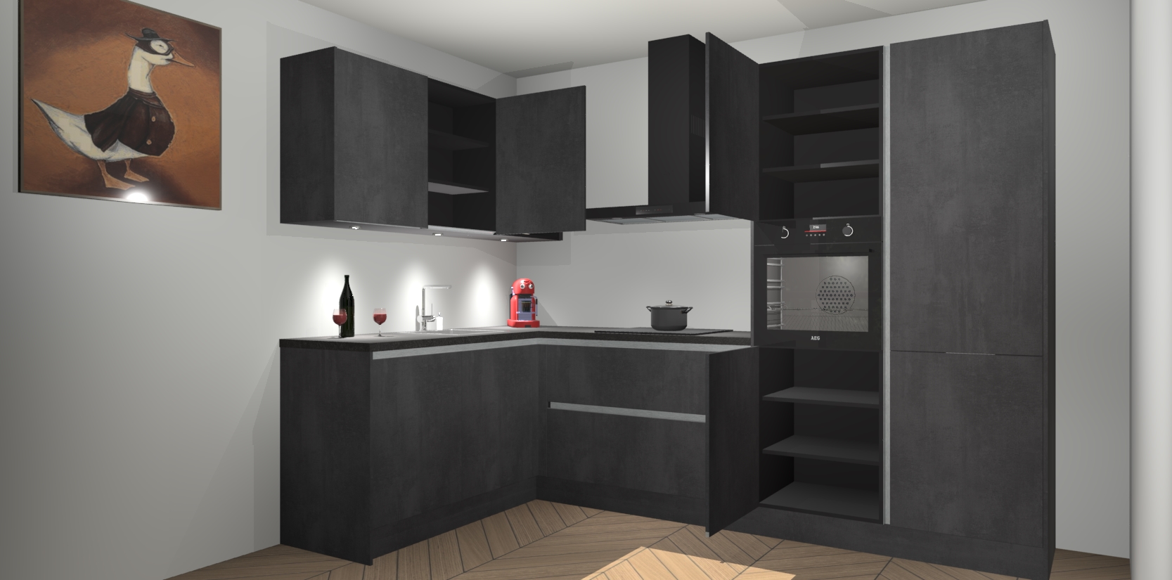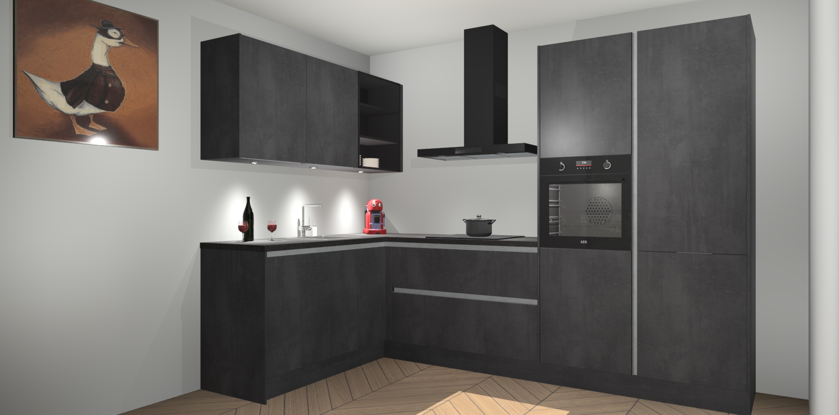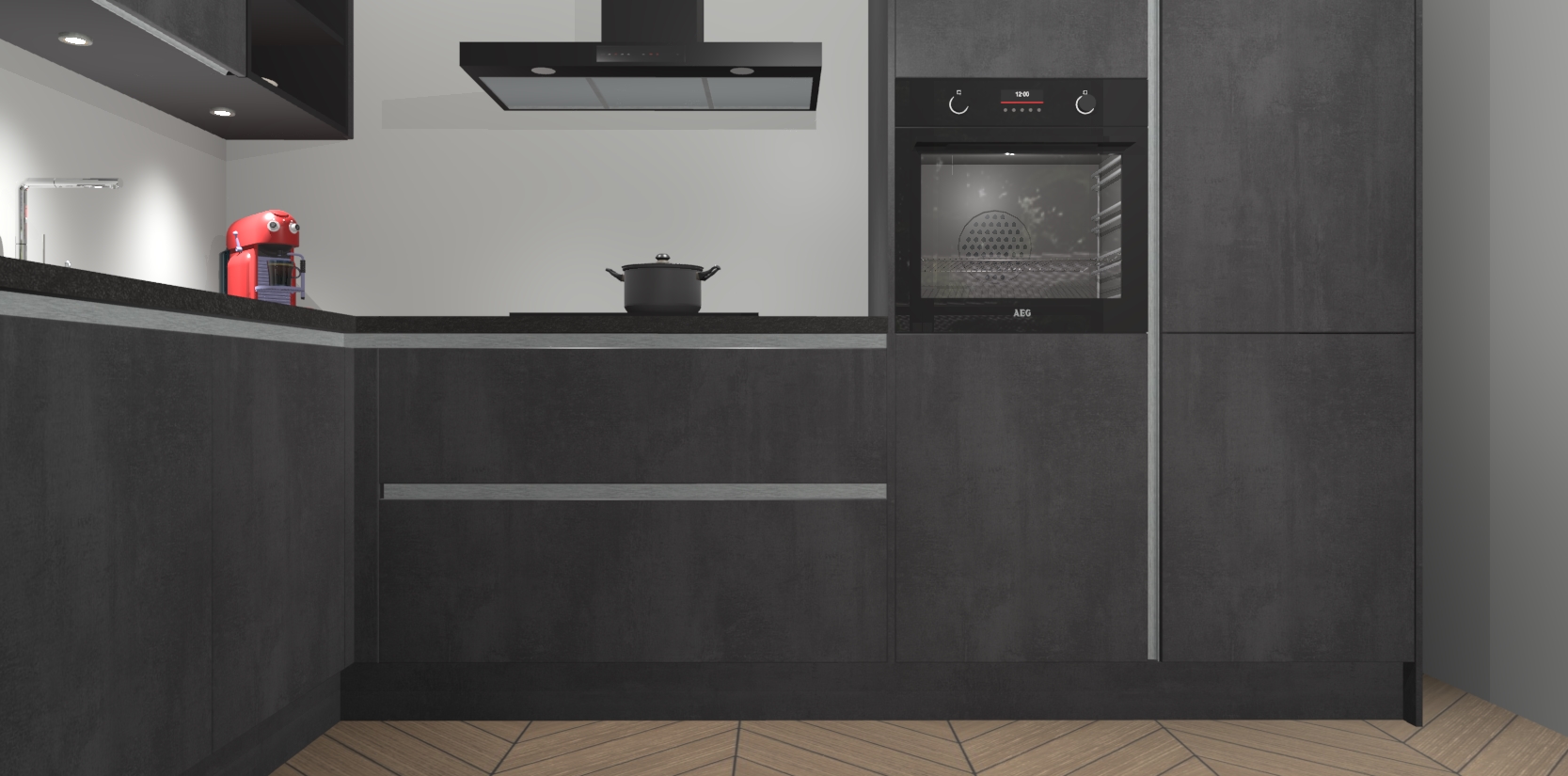 De Beton Zwarte greeploze keuken Cognac gaat alleen maar om de beste keukenervaring. Kies gewoon de beste apparatuur en ongeëvenaarde Duitse constructie die u thuis wilt hebben en verander uw huiskamer hartelijkheid meteen in professionaliteit. Laat de toon weten dat u gemakkelijk kan genieten van alle luxe die u verdiend? Bestel nu de Beton Zwarte greeploze keuken Cognac voor bij u thuis!